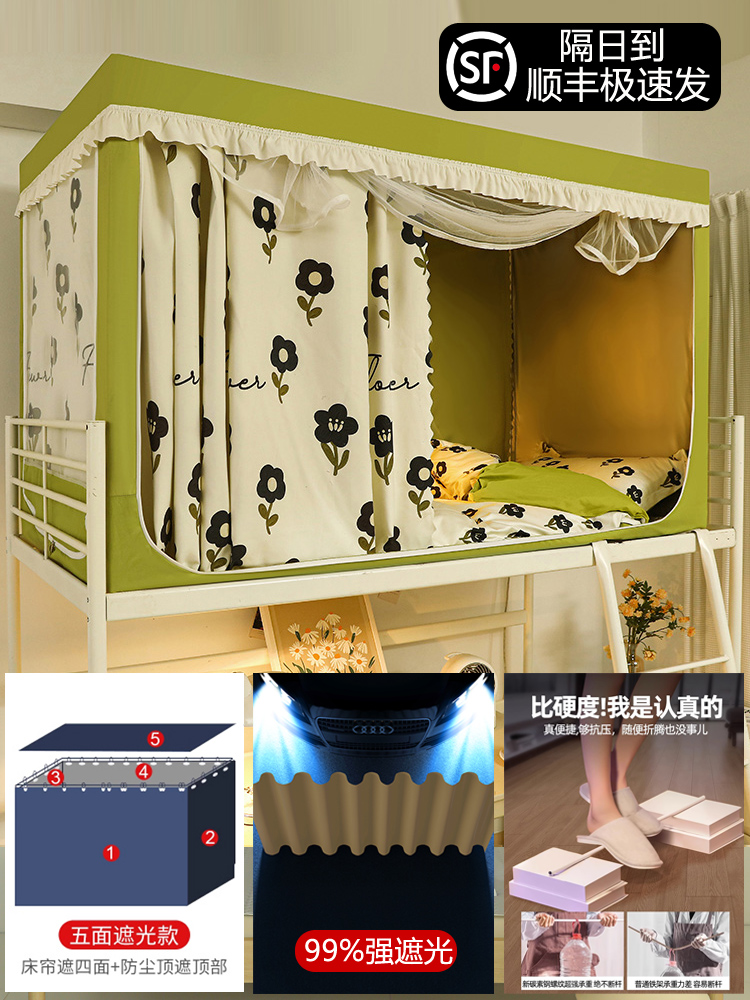 강력한 차광 대학 기숙사 침대 커튼 모기장 일체형 기숙사 싱글 이층 침대 범용 커튼 기숙사 텐트