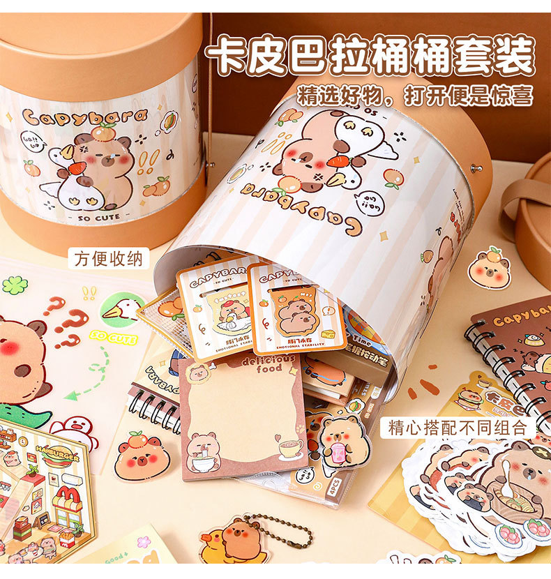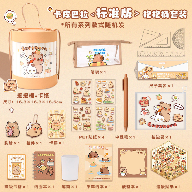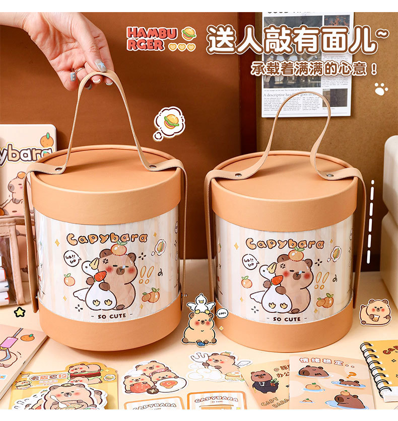 귀여운 카피 바라 문구 세트 포옹 버킷 귀여운 선물 가방 만화 실용적인 선물 서프라이즈 문구 학교 오프닝 선물스토어 가기