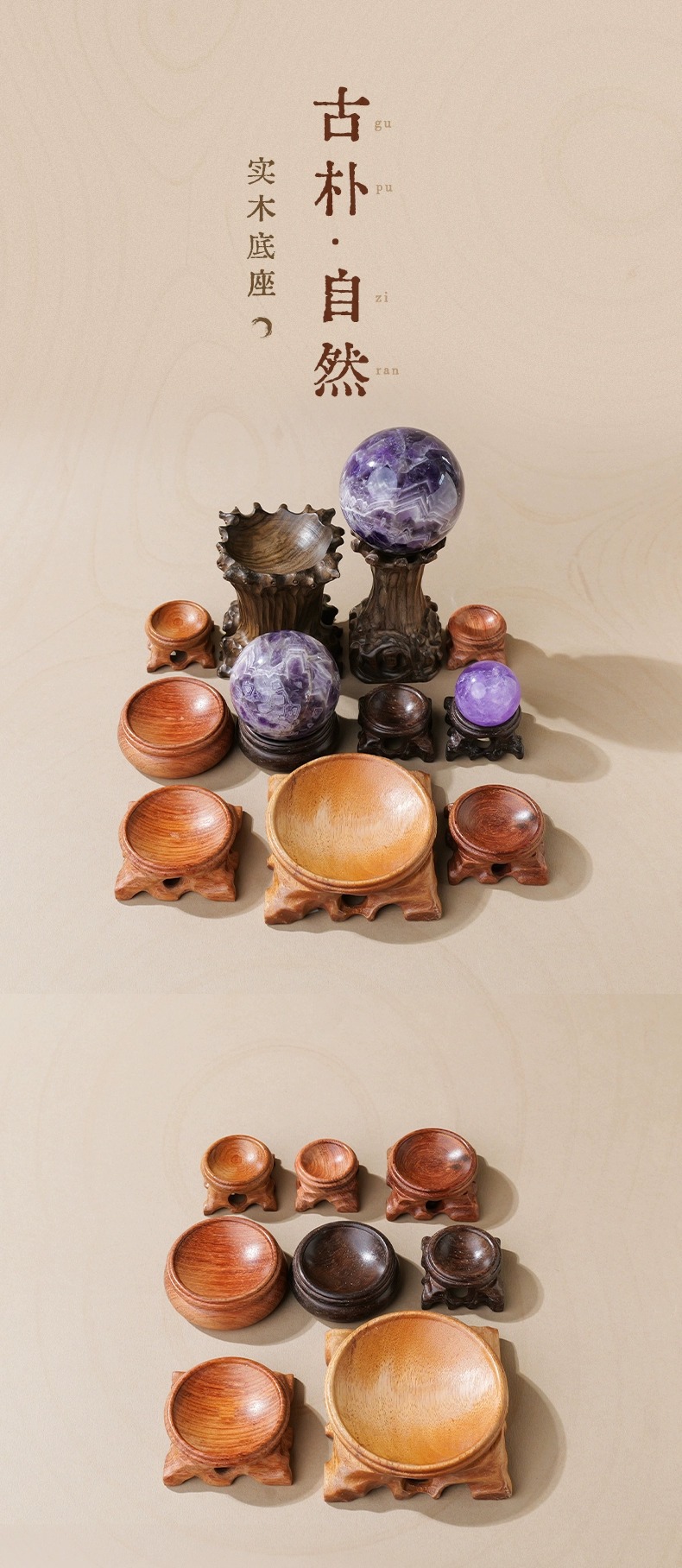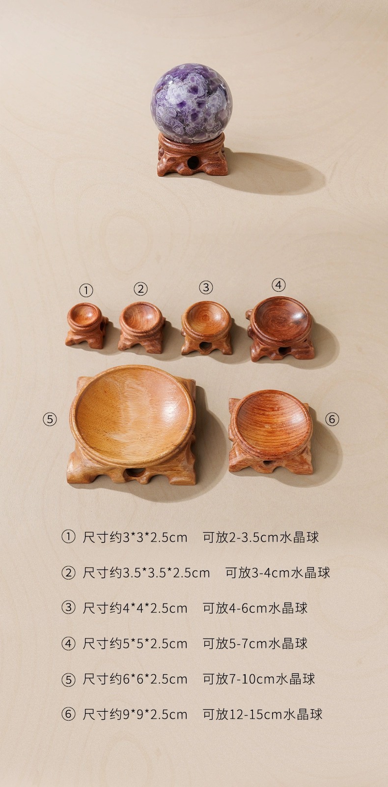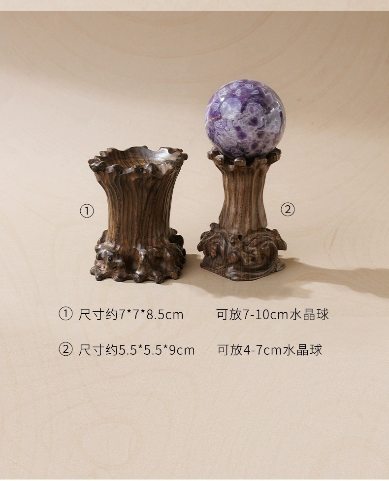 공장 도매 나무 크리스탈 볼베이스 창조적 인 로그 볼 홀더 단단한 나무 프레임 공예 광물 표본 디스플레이 랙