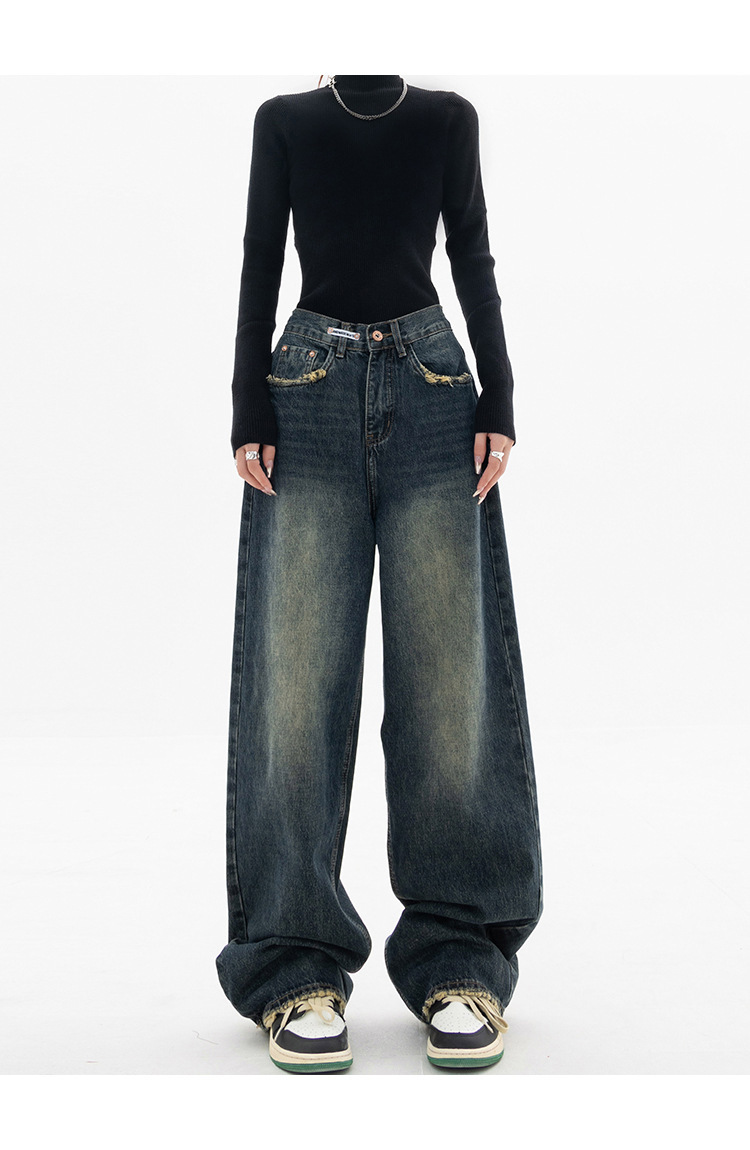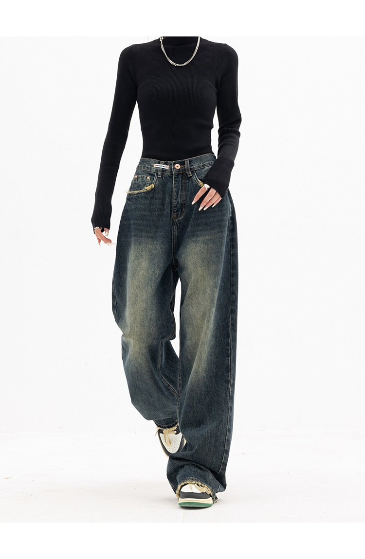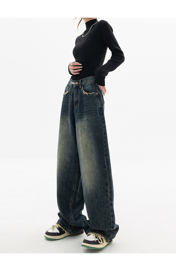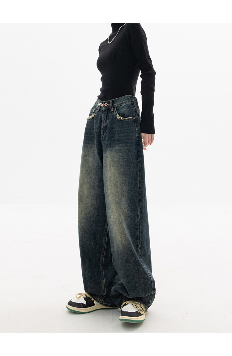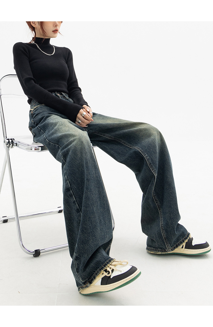 여성용 와이드 레그 청바지 플러스 사이즈 하이 웨이스트 루즈 슬리밍 스트레이트 바지 뚱뚱한 소녀 mm 배 모양 바지 여성 가을스토어 가기