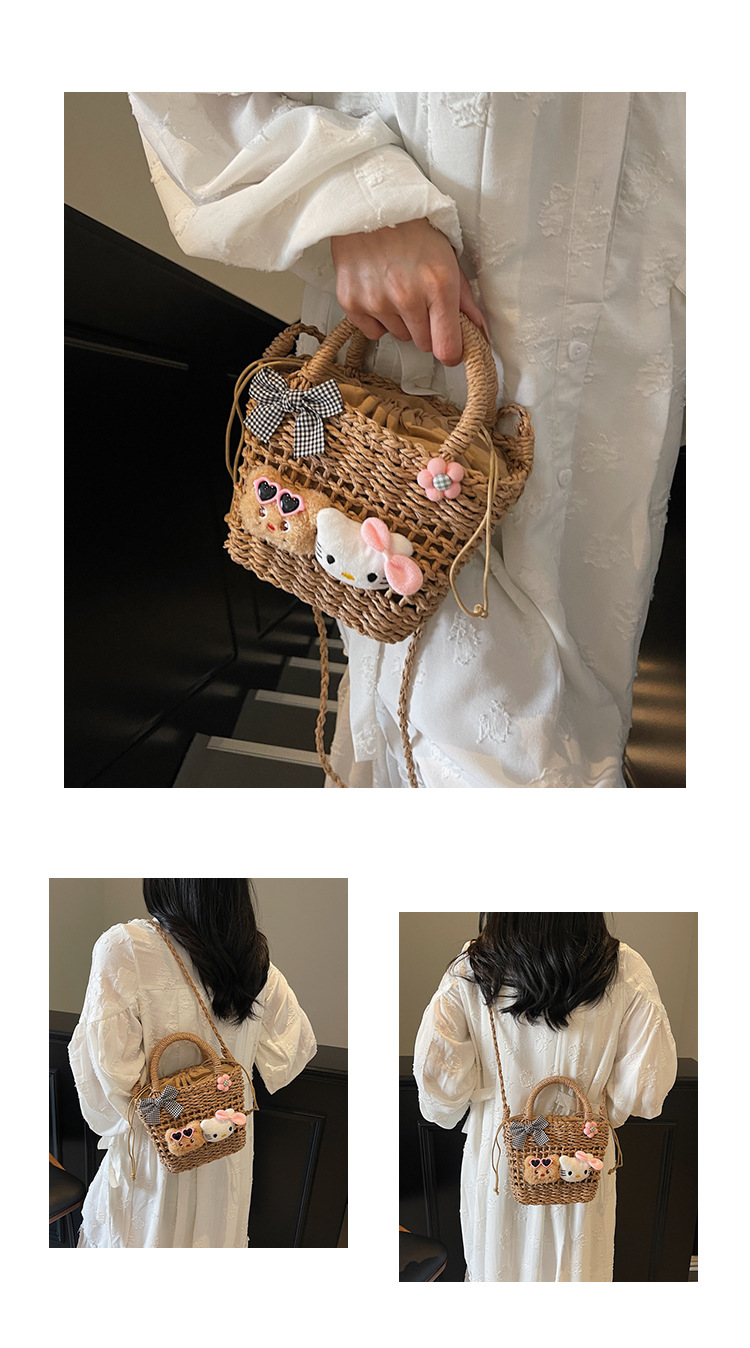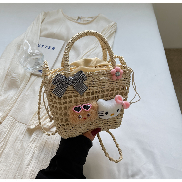 휴가 해변 가방 2025 새로운 만화 귀여운 짠 핸드백 소녀 유행 다목적 어깨 크로스 바디 백스토어 가기