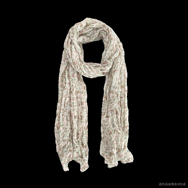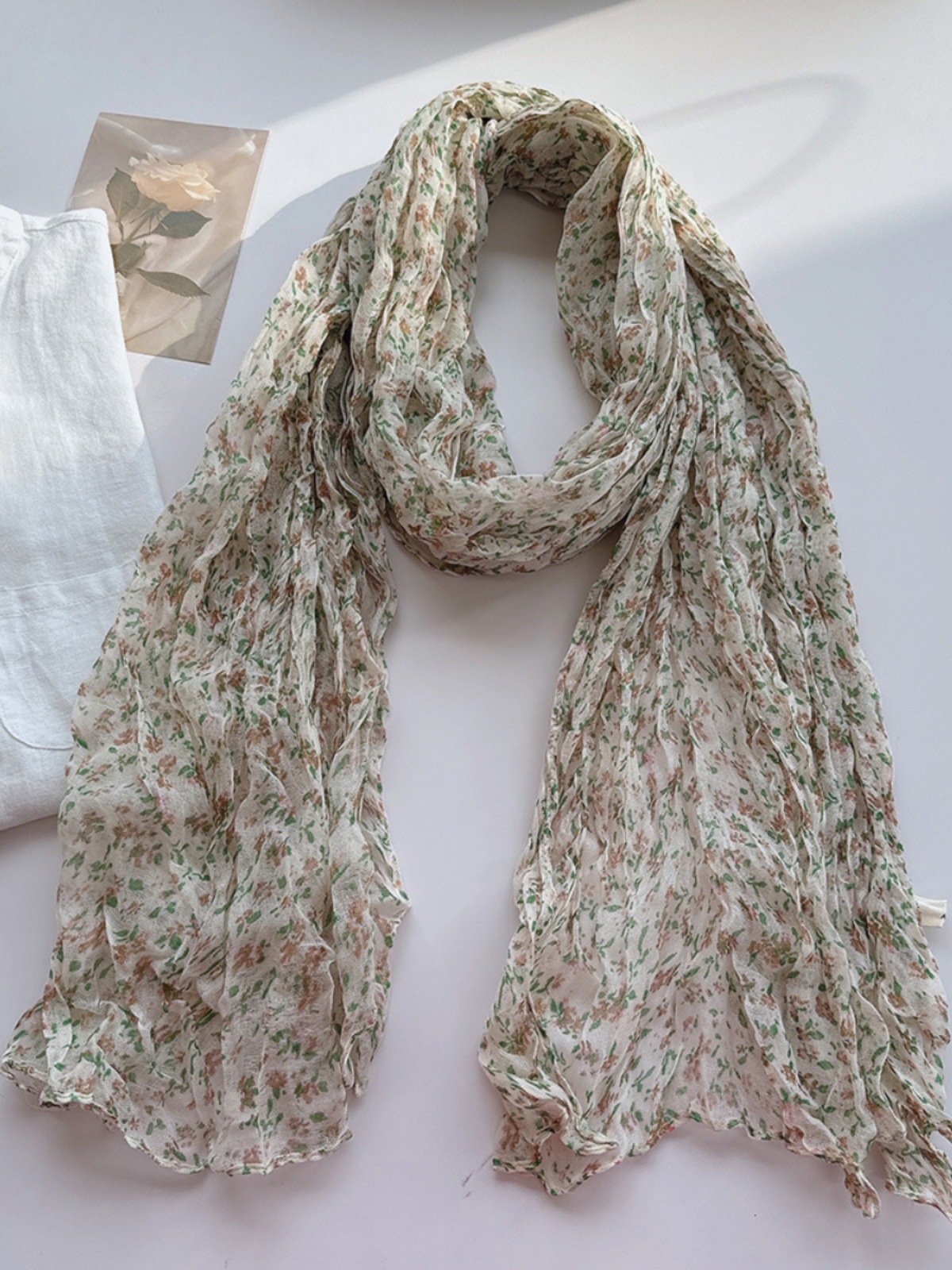 여성을 위한 목가적 작은 꽃무늬 면 및 린넨 스카프, 작은 신선한 주름 긴 실크 스카프, 얇은 목 보호대, 목 스카프, 문학적 스타일스토어 가기