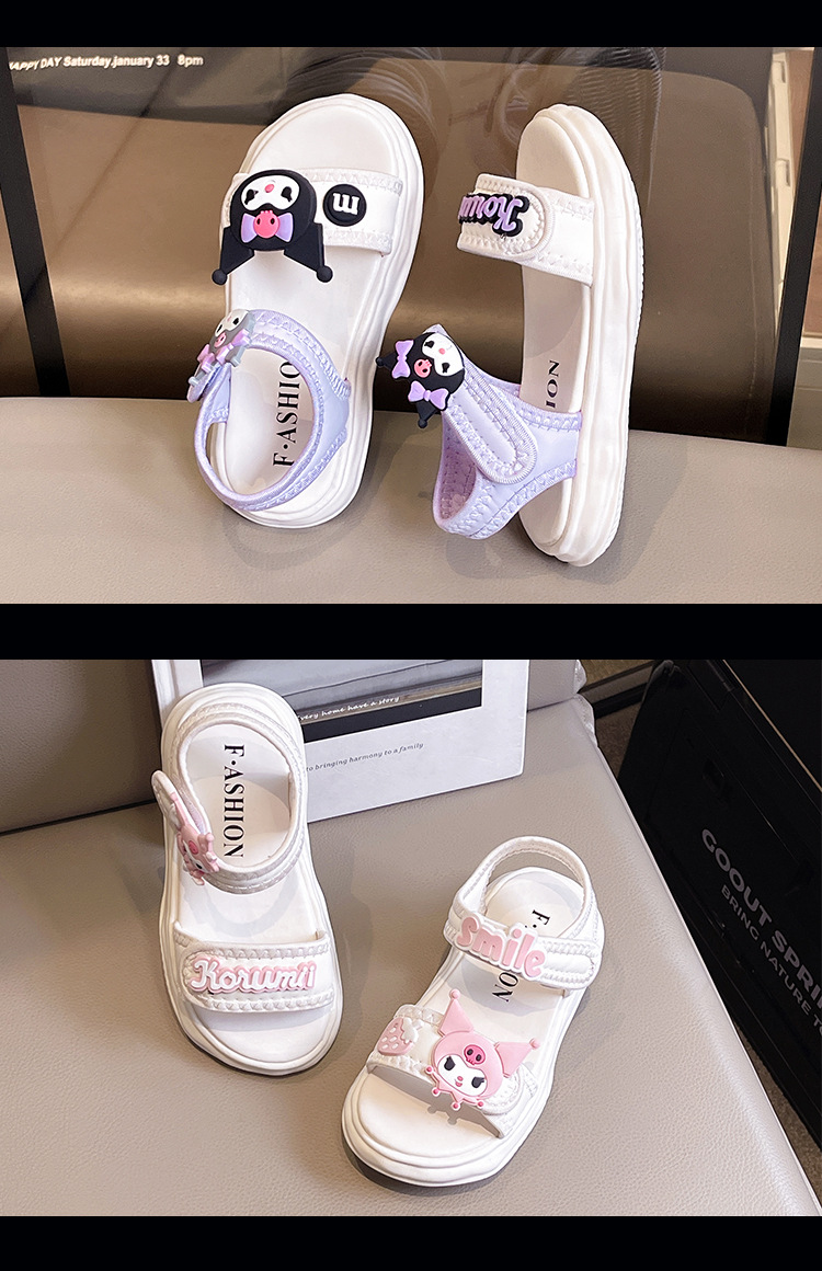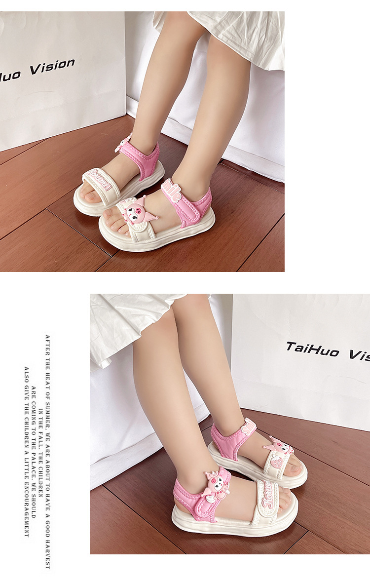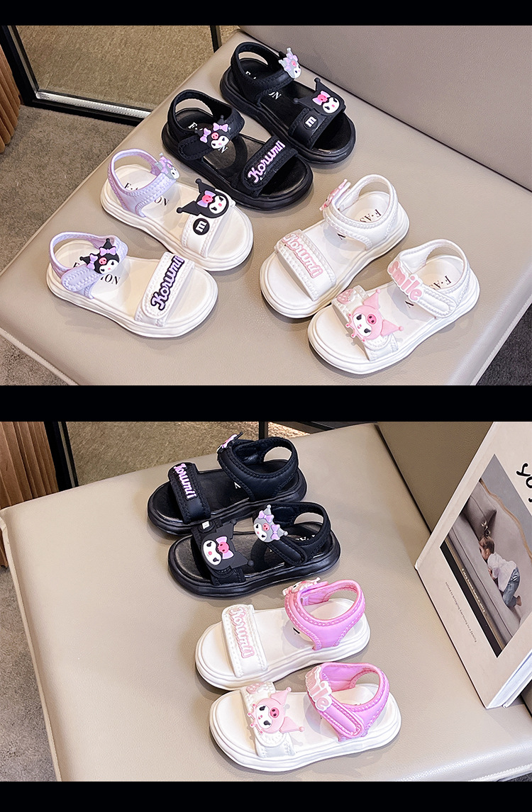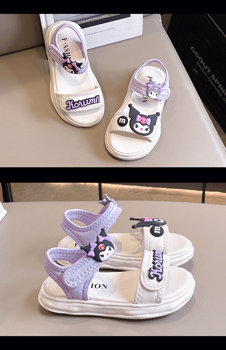 소녀 Kulomi 샌들 2025 새로운 여름 부드러운 바닥 비치 신발 플랫 공주 신발 어린이 패션 오픈 발가락 신발스토어 가기
