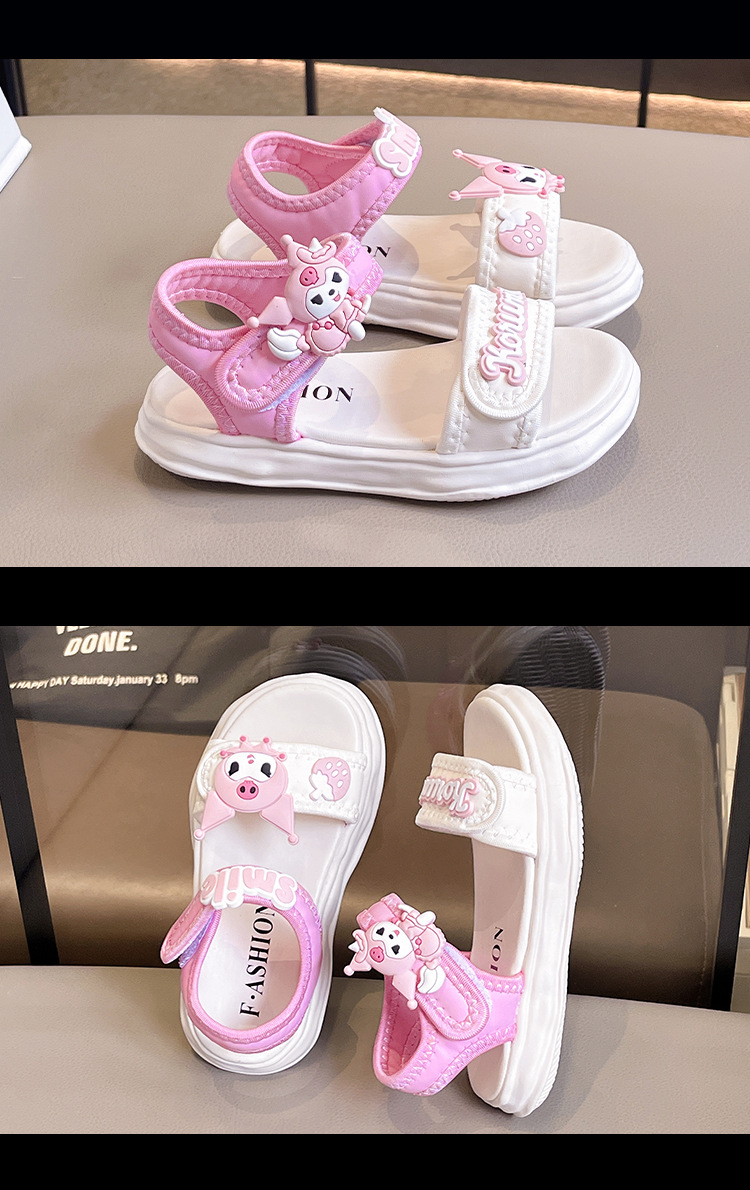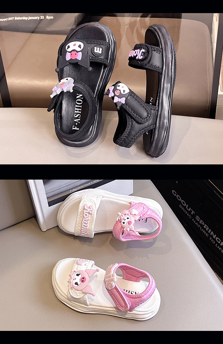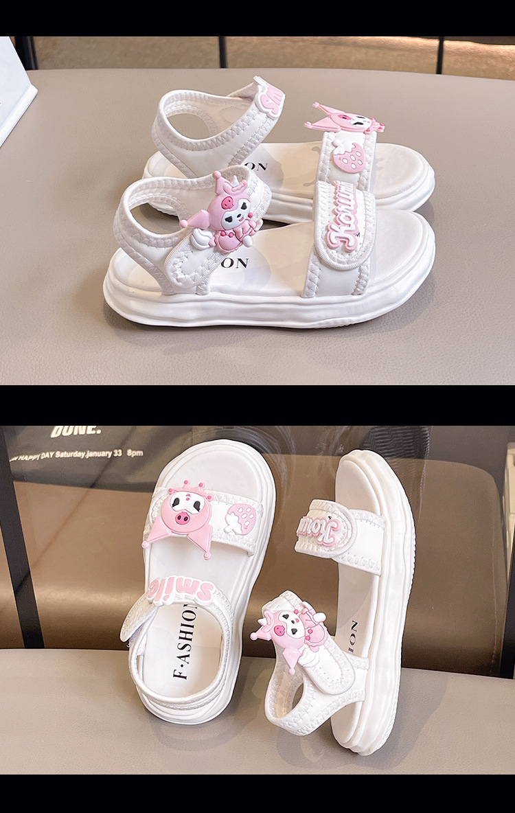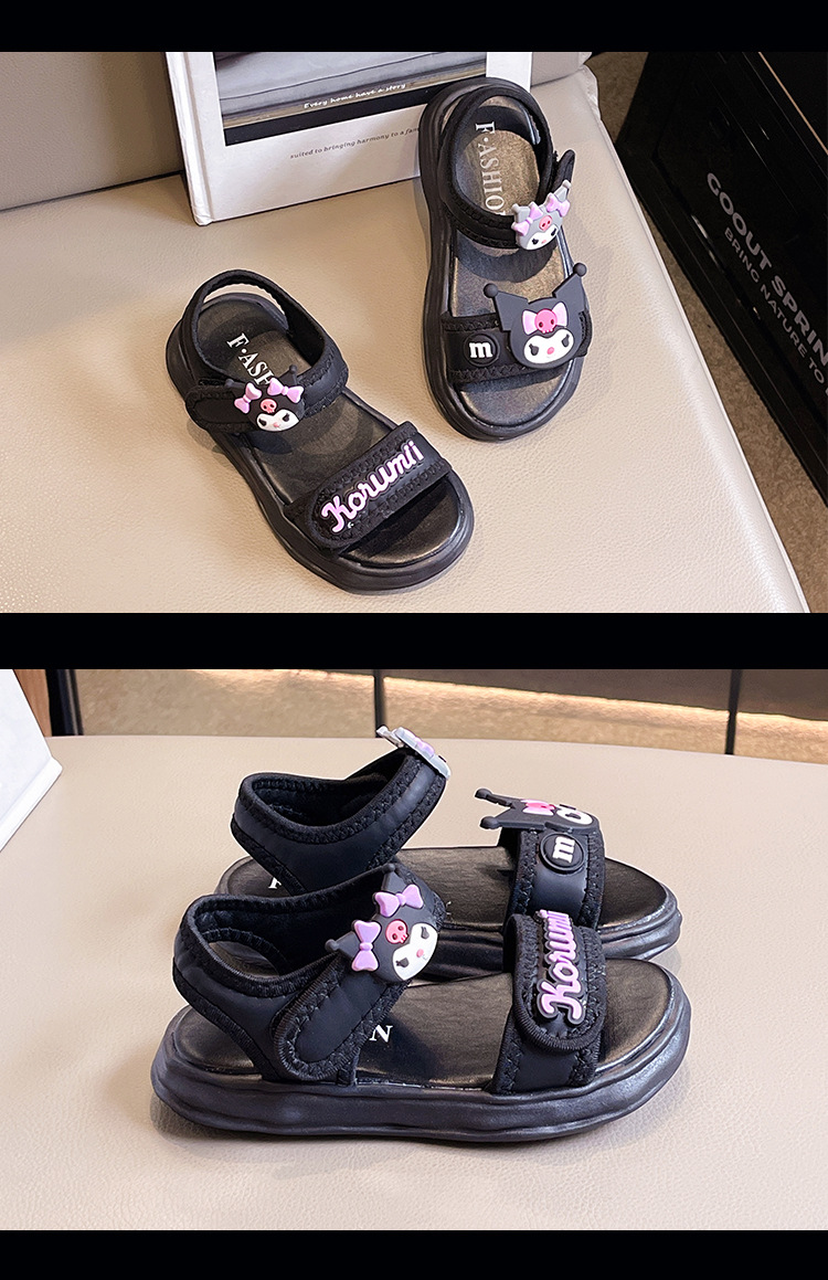 소녀 Kulomi 샌들 2025 새로운 여름 부드러운 바닥 비치 신발 플랫 공주 신발 어린이 패션 오픈 발가락 신발스토어 가기