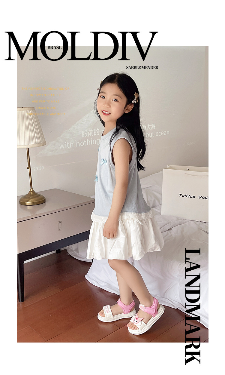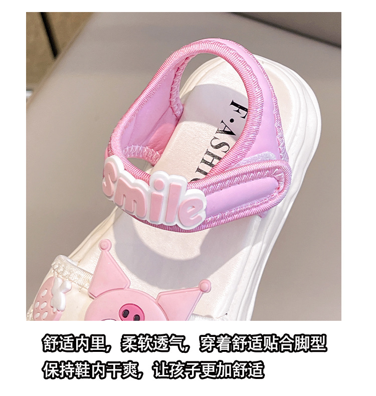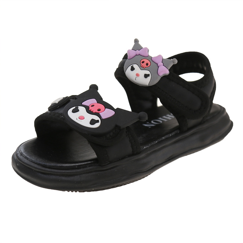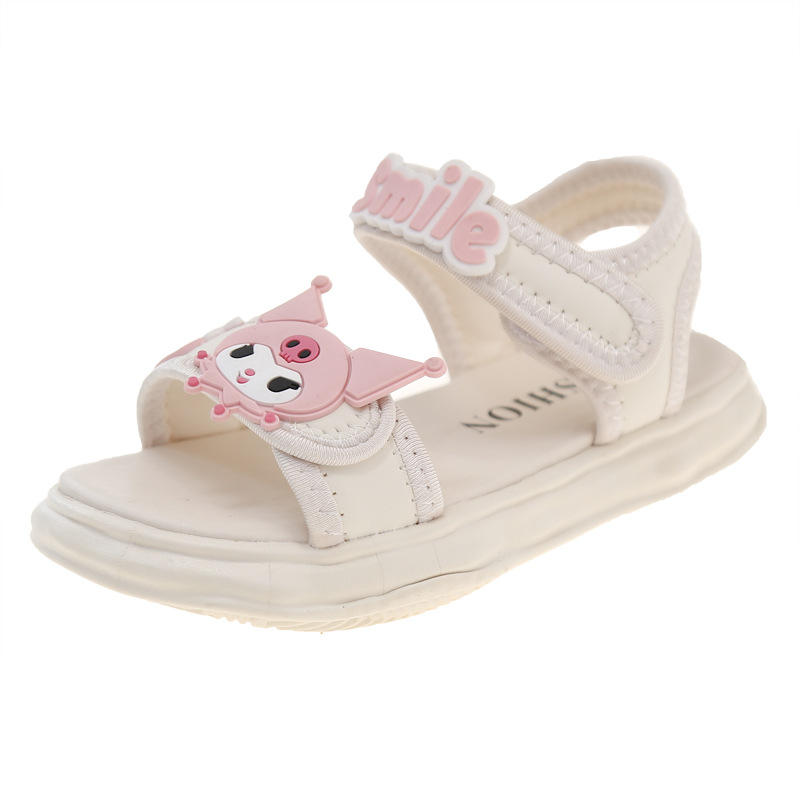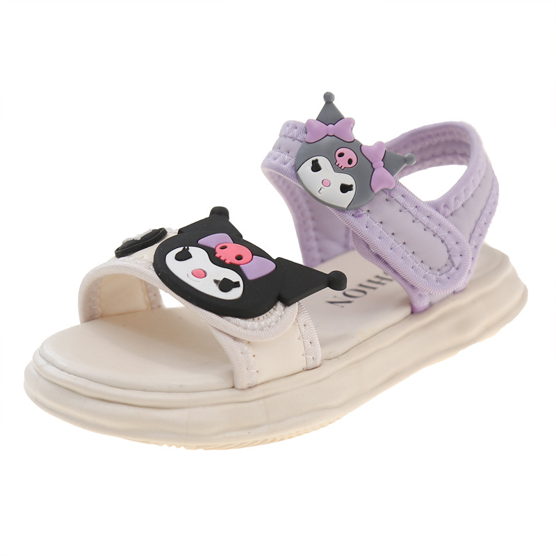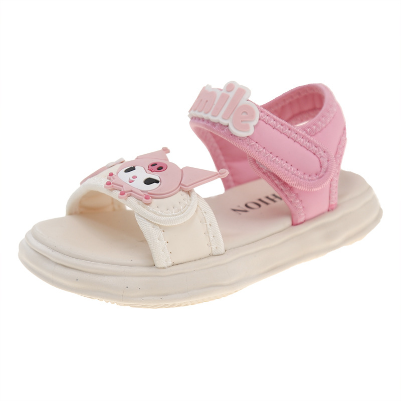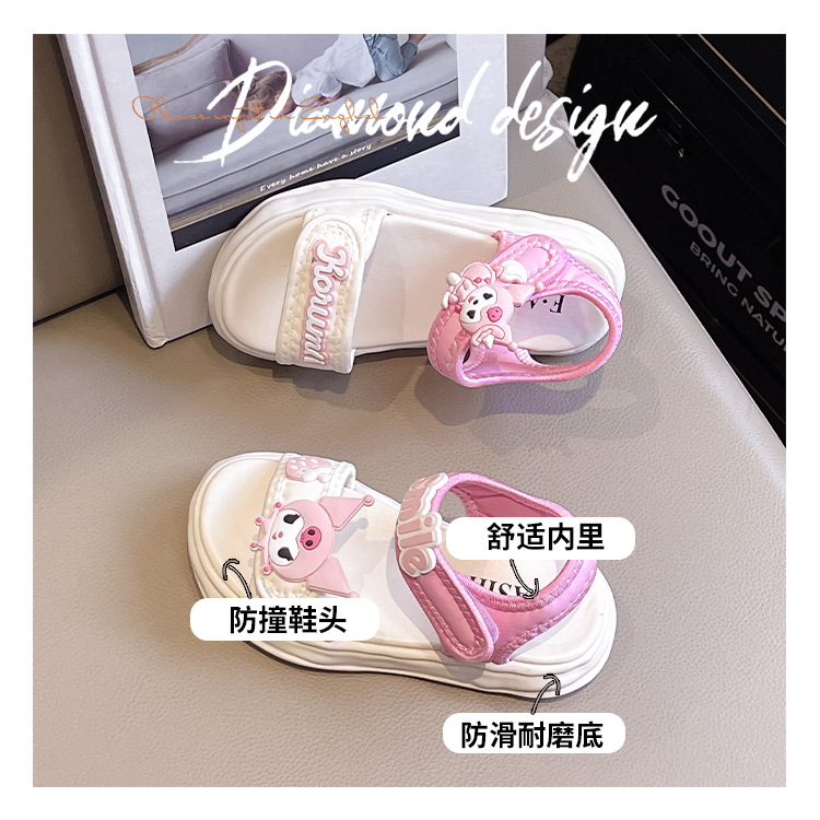 소녀 Kulomi 샌들 2025 새로운 여름 부드러운 바닥 비치 신발 플랫 공주 신발 어린이 패션 오픈 발가락 신발