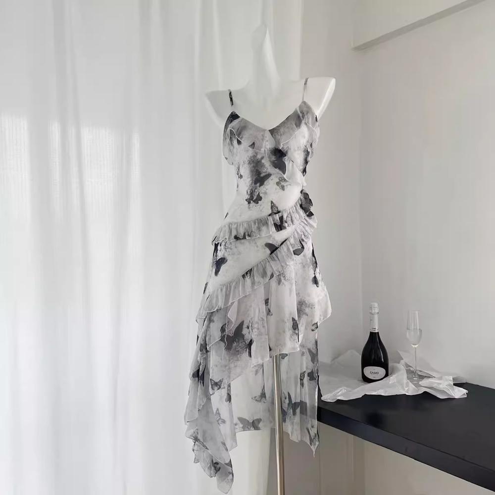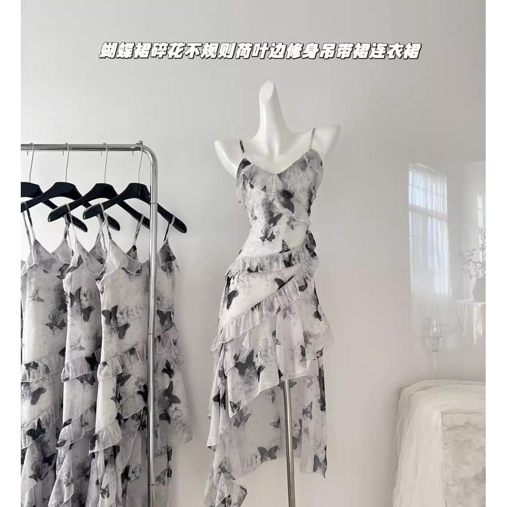 순수한 욕망 유지 하이 엔드 올 매치 나비 스커트 플로랄 불규칙한 슬립 스커트 새로운 여자 여름 원피스스토어 가기