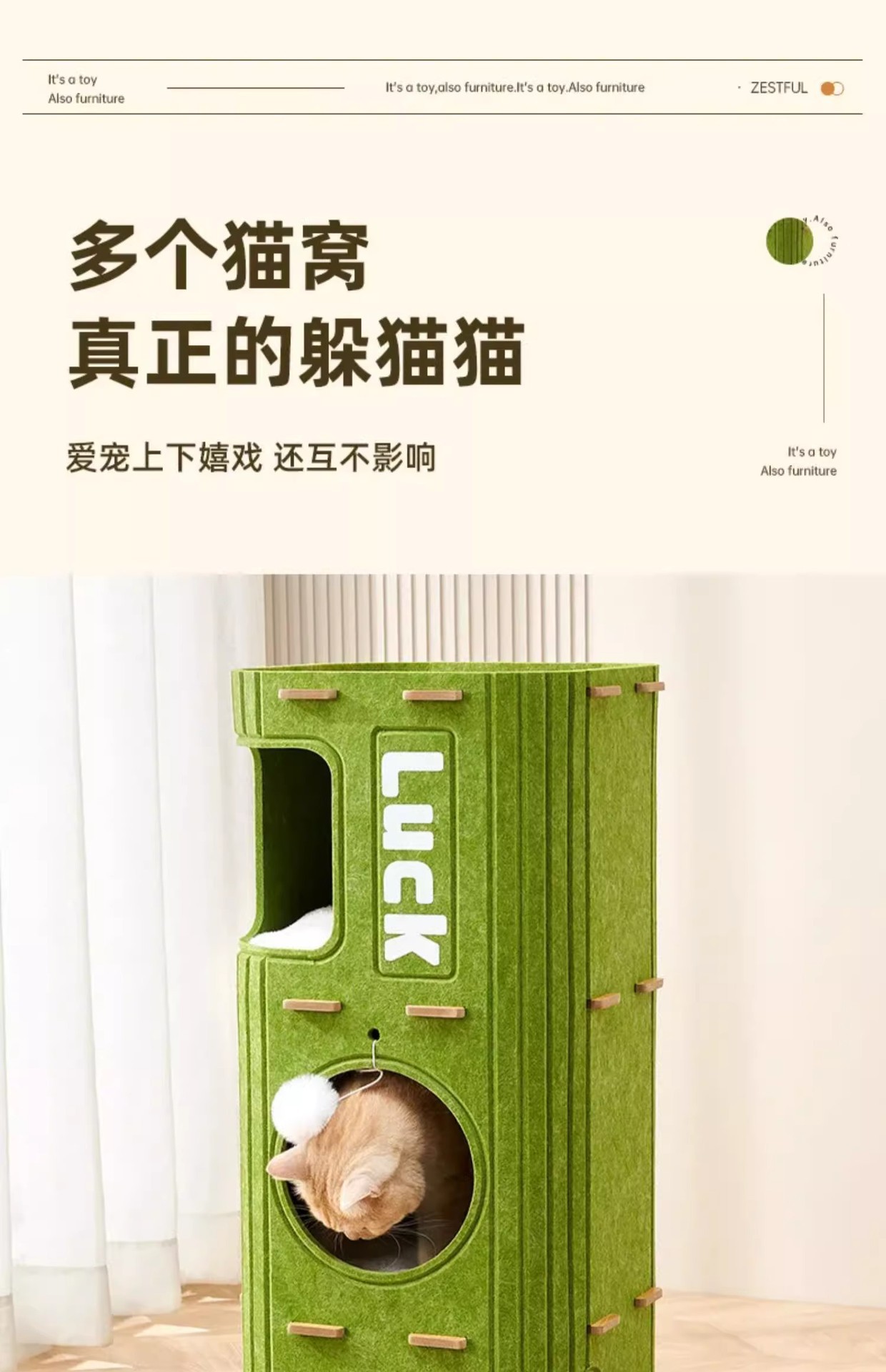 고양이 등반 랙 고양이 둥지 펠트 버킷 둥지 더블 레이어 3 층 고양이 양동이 나무 구멍 고양이 등반 랙 큰 고양이 빌라스토어 가기