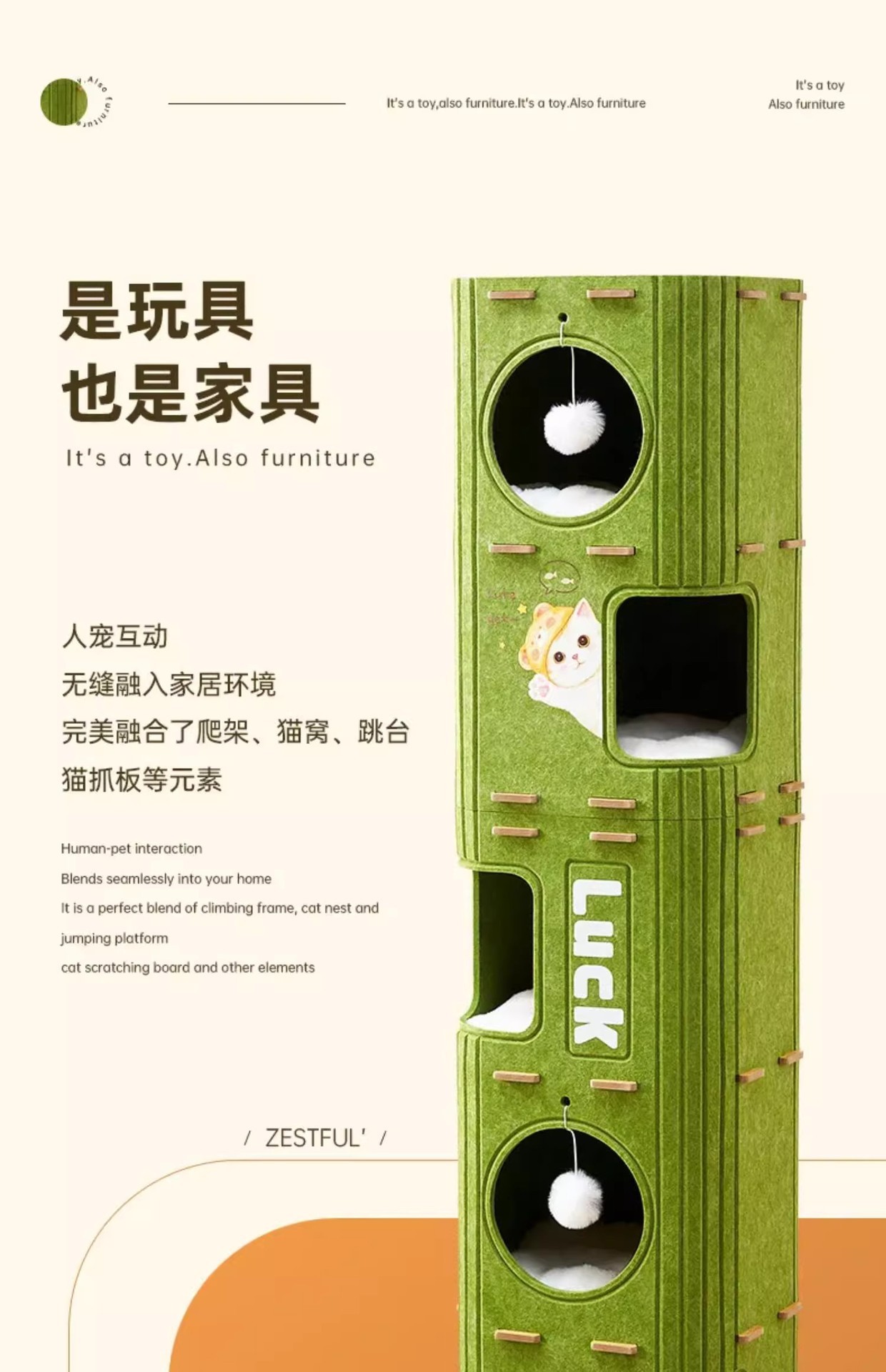 고양이 등반 랙 고양이 둥지 펠트 버킷 둥지 더블 레이어 3 층 고양이 양동이 나무 구멍 고양이 등반 랙 큰 고양이 빌라