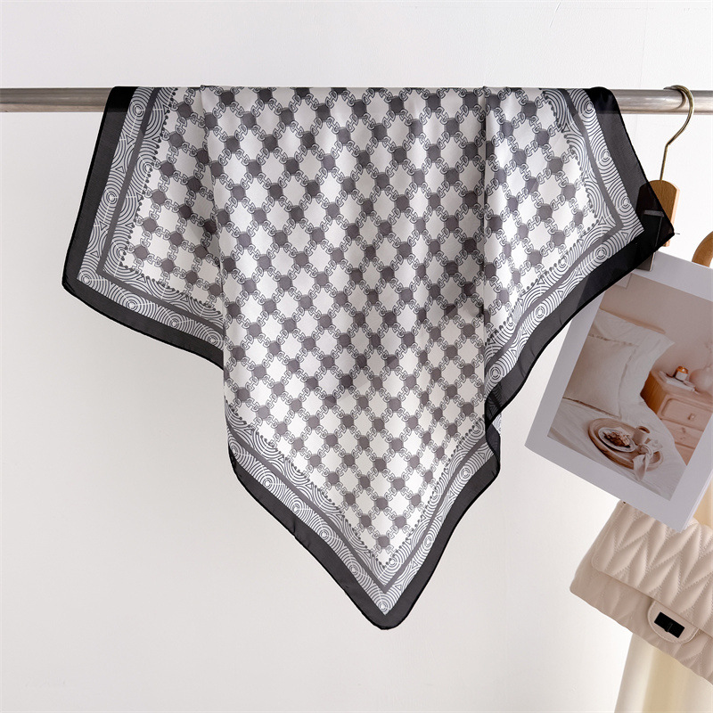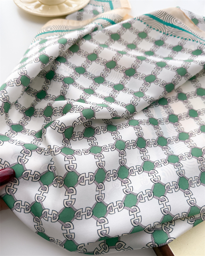 기하학적 녹색 패턴 인터플렉스 프린트 실크 스카프, 고급 숄, 다용도 넥 스카프, 스카프, 여성용 스카프