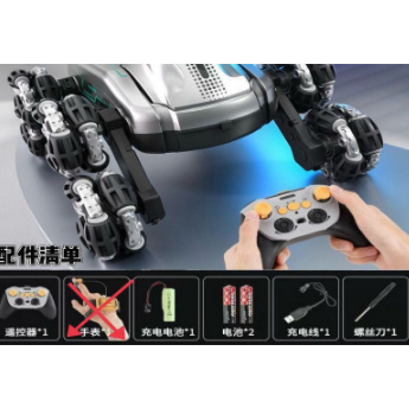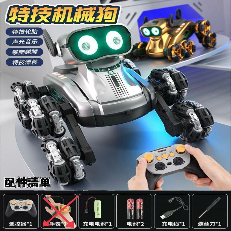 • 8륜 로봇견 - 티타늄 실버 [리모컨 손잡이 + 귀 음향 효과 + 화려한 조명]