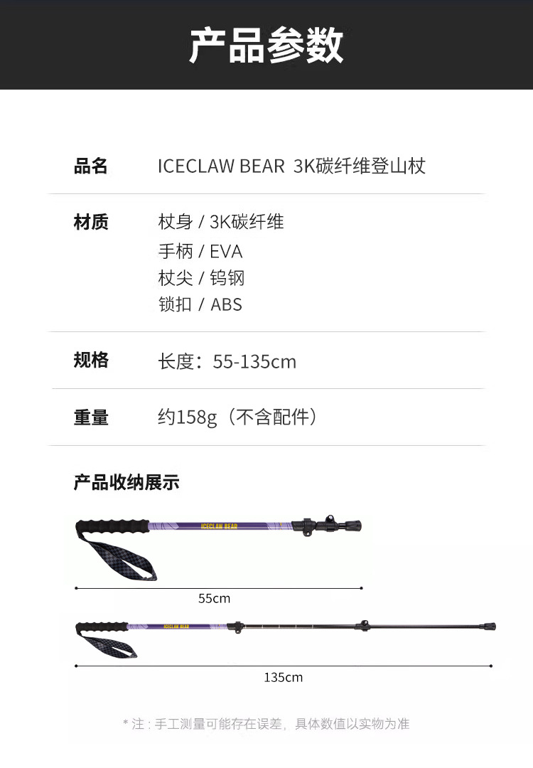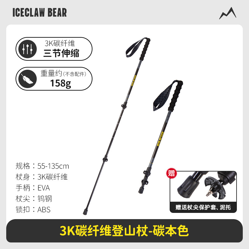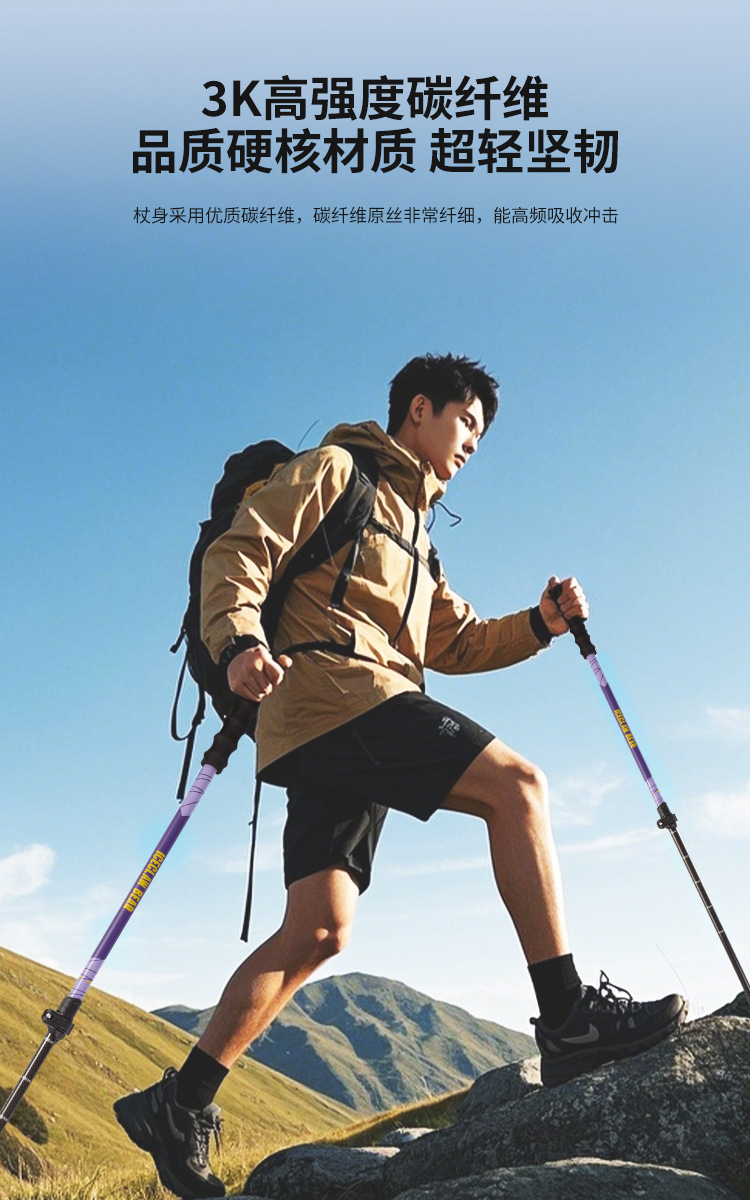 공장 3K 탄소 섬유 하이킹 스틱 산악 등반 접이식 워킹 스틱 탄소 3 섹션 울트라 라이트 텔레스코픽 스틱 야외 하이킹 장비스토어 가기