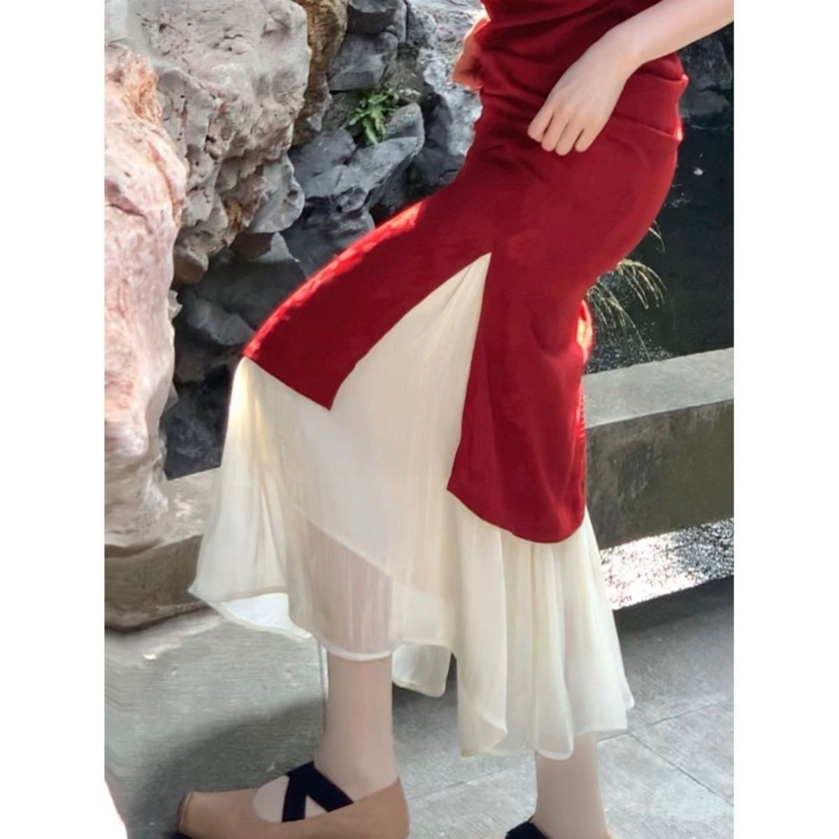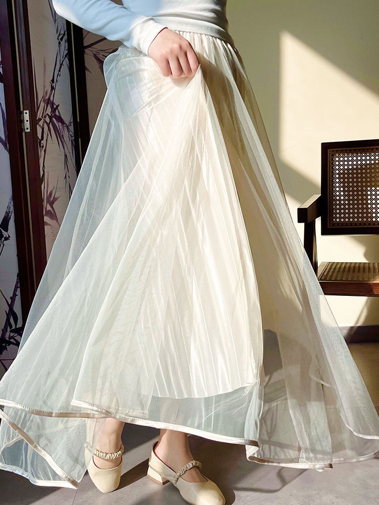 레트로 하우스 치파오 안감 하프 스커트, 부드럽고 우아하며 활용도가 높은 요정 바텀 스커트, 노출 방지 여성용스토어 가기