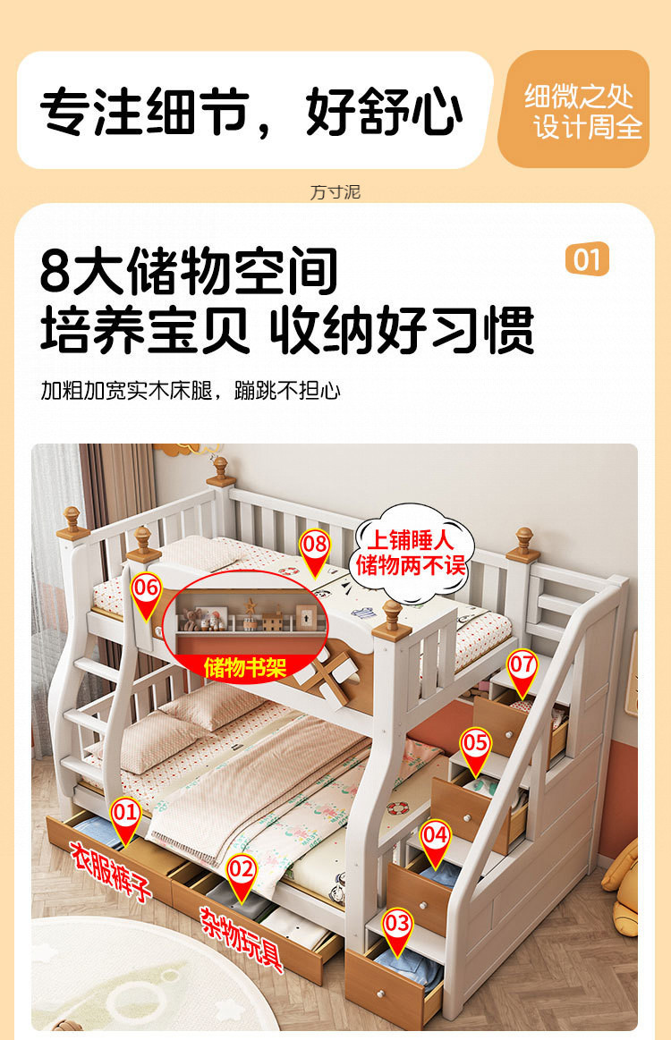 • 통나무 사다리 침대 + 책장 + 서랍 + 매트리스 + 위층 --- 인터넷 연예인과 같은 스타일