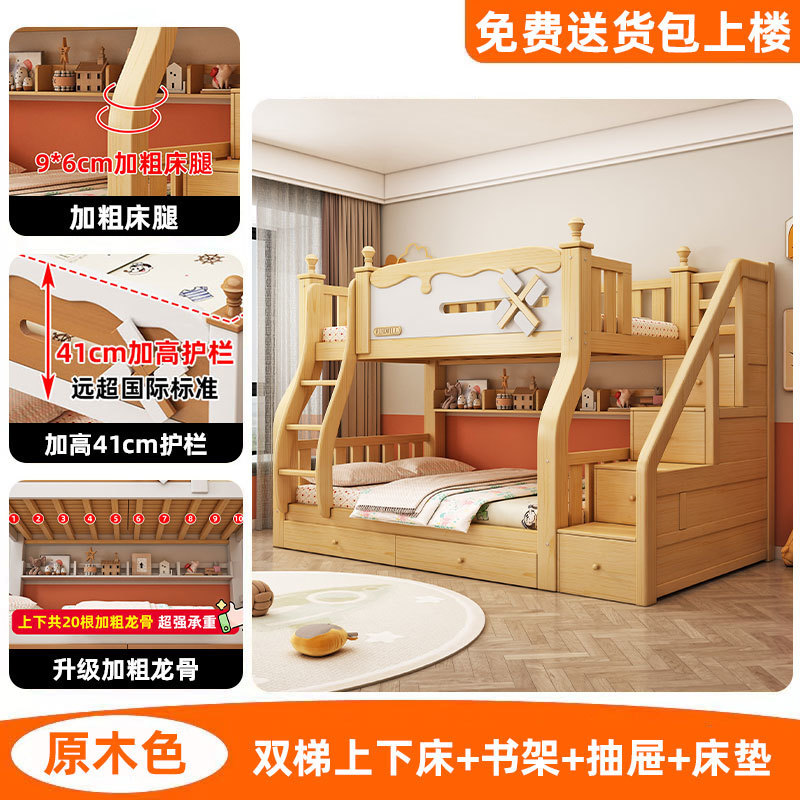 • 통나무 이중사다리 침대 + 책장 + 서랍 + 매트리스 + 위층 --- 인터넷 연예인과 같은 스타일