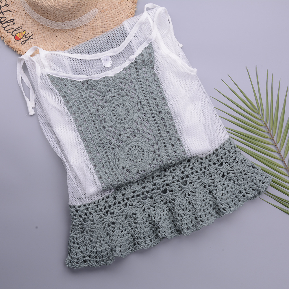 2025 아마존 유럽과 미국 해변 특수 핸드 훅 수영복 세트 썬 스크린 슬링 휴가 메쉬 스커트