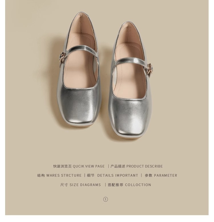 정품 가죽 레트로 프랑스 저발 가죽 신발 여성의 2025 봄 광장 발가락 실버 얕은 입 싱글 신발 플랫 메리 제인 신발스토어 가기