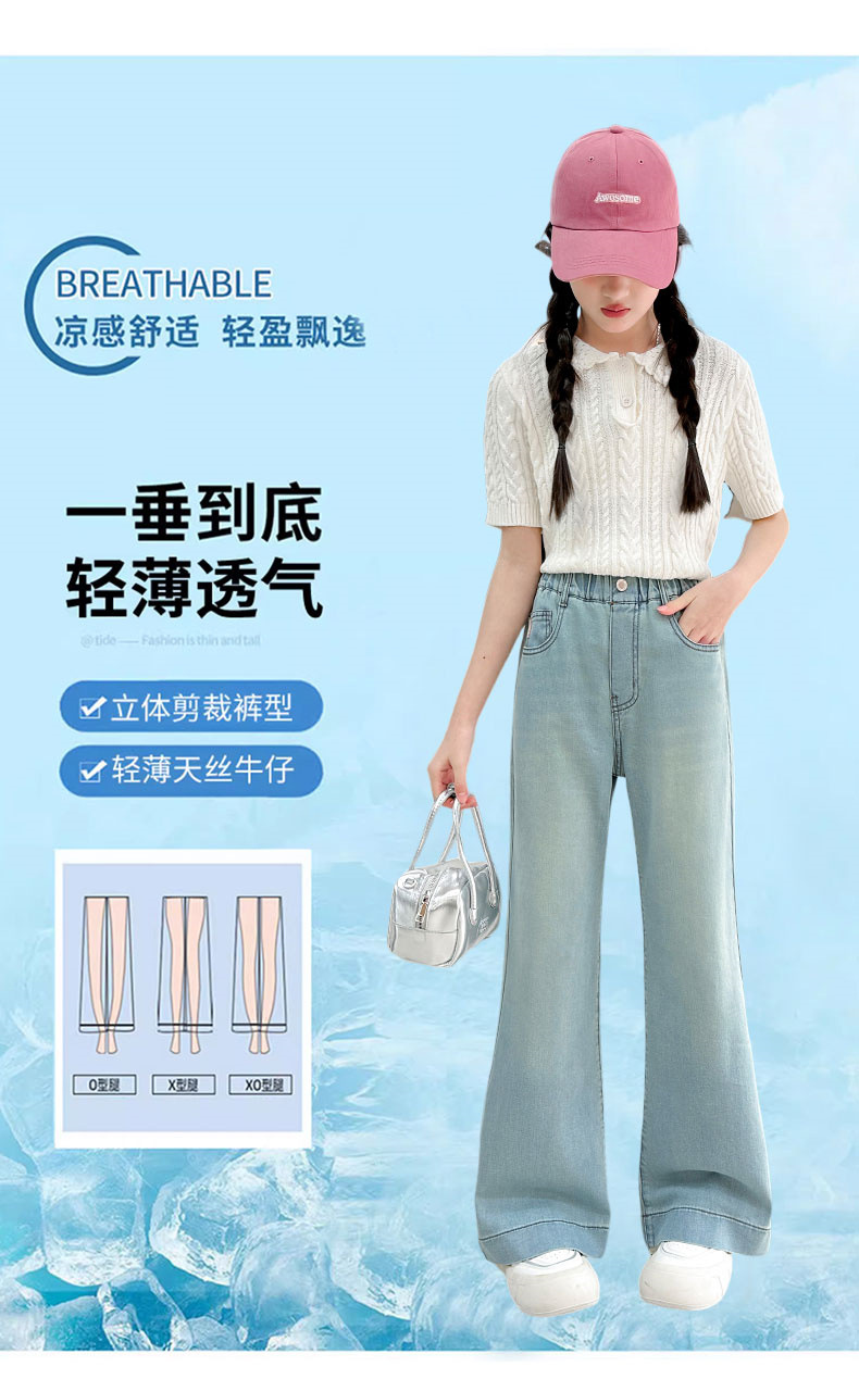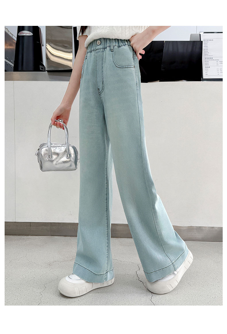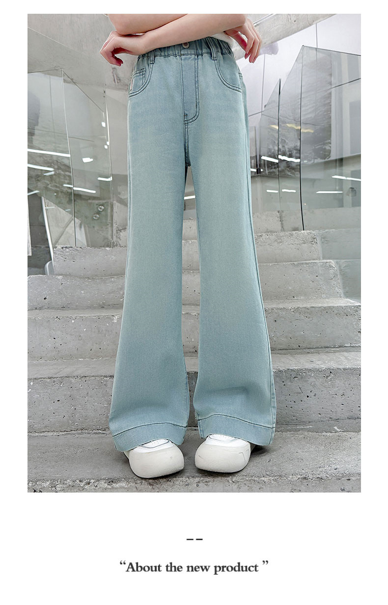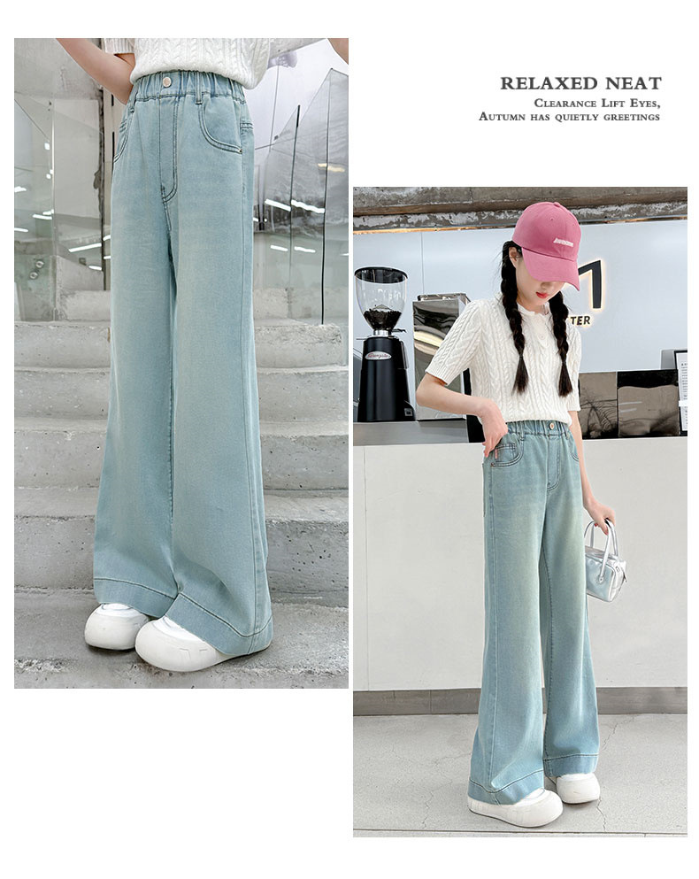 여자 여름 넓은 다리 바지 2025 새로운 중학교 소녀 느슨한 바지 어린이 여름 데님 스트레이트 바지