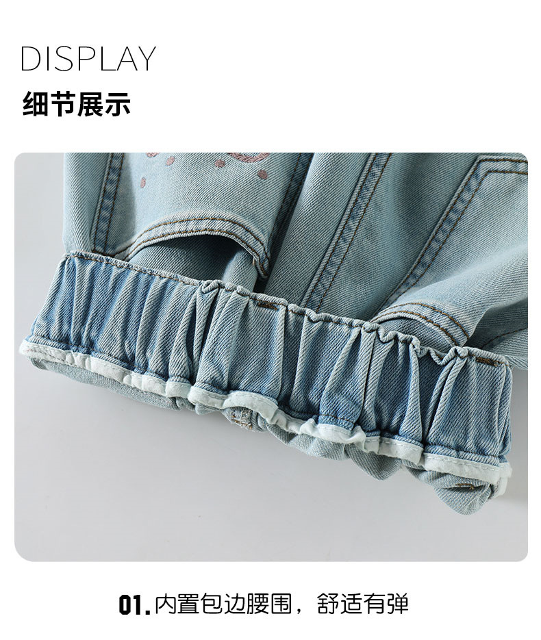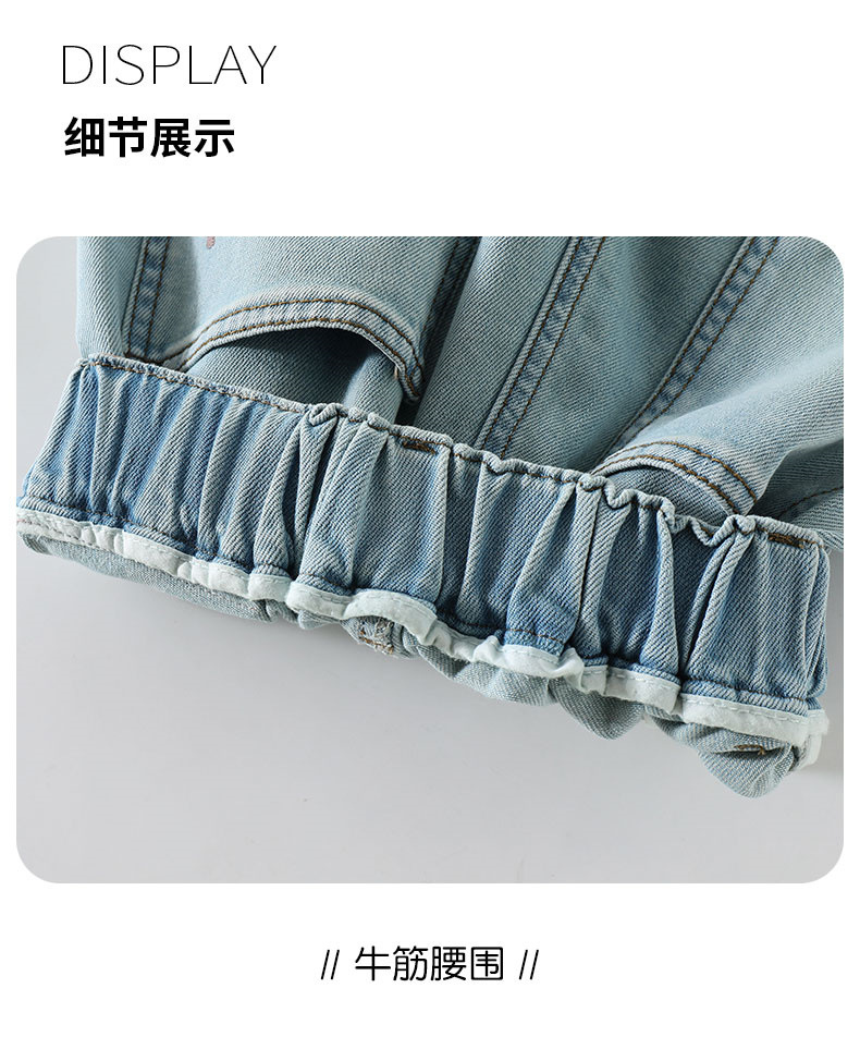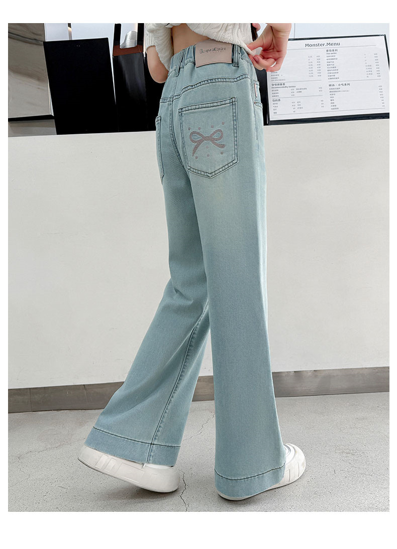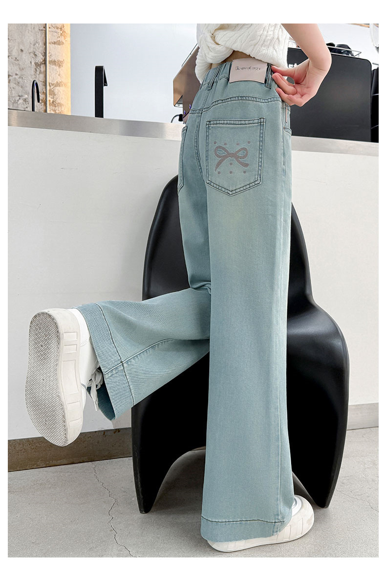 여자 여름 넓은 다리 바지 2025 새로운 중학교 소녀 느슨한 바지 어린이 여름 데님 스트레이트 바지스토어 가기
