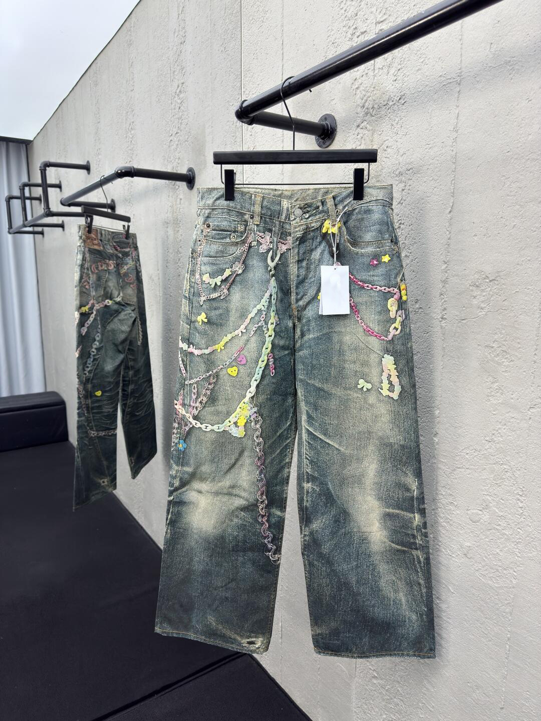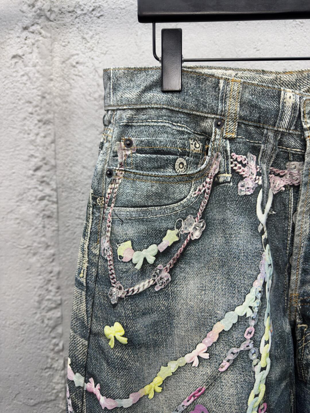 하이 엔드 버전 ac 1981M 남성과 여성의 2025 새로운 3D 인쇄 캔디 체인 ne 스트레이트 청바지스토어 가기