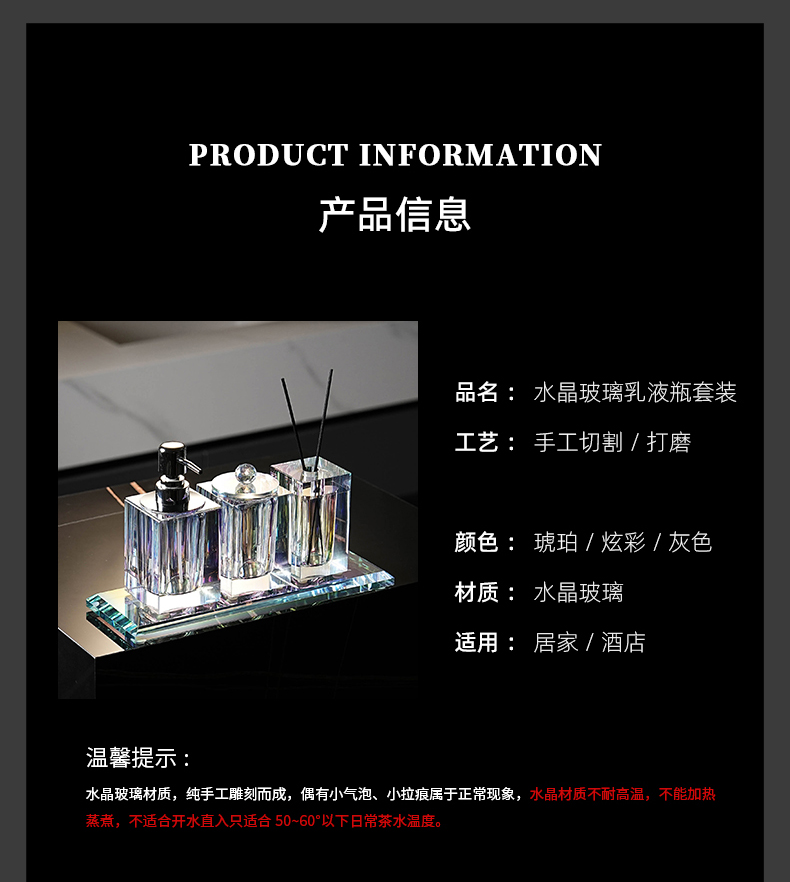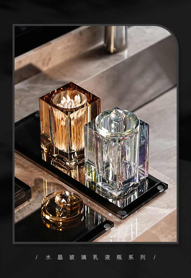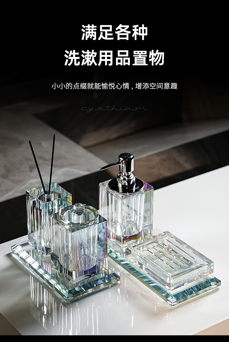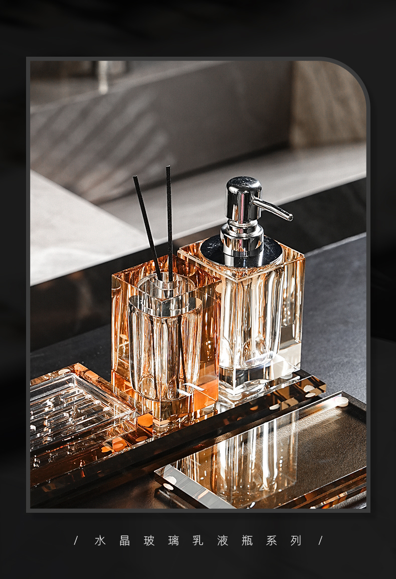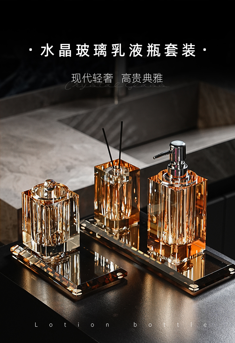 현대 럭셔리 크리스탈 욕실 제품 키트 손 소독제 병 세트 비누 상자 빗 홀더 아로마 테라피 병 로션 병