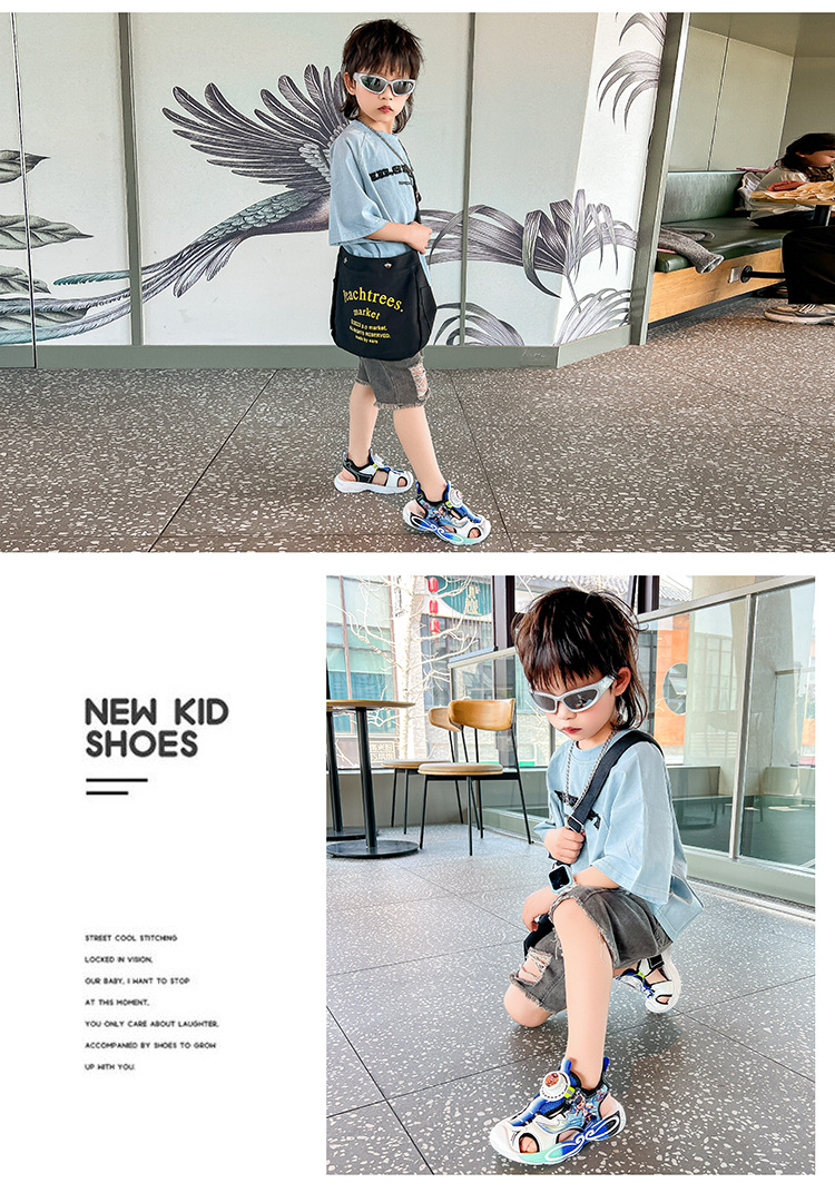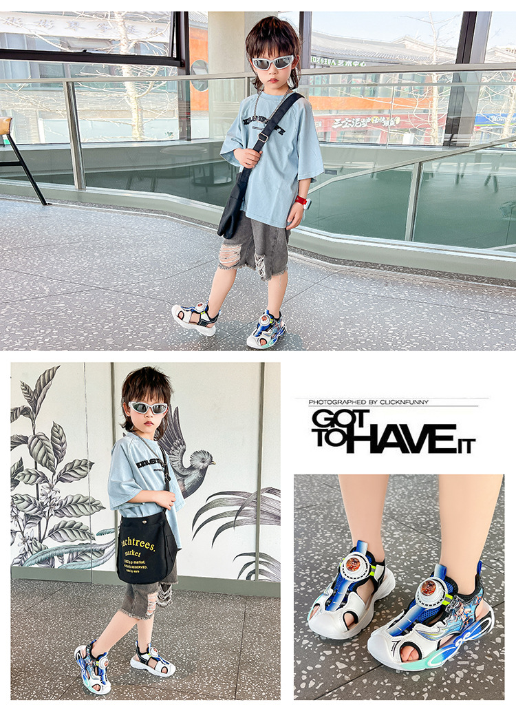 어린이 발가락 샌들 통기성 2025 여름 새 만화 네자 어린이 신발 대형 어린이 통기성 소년 비치 신발스토어 가기