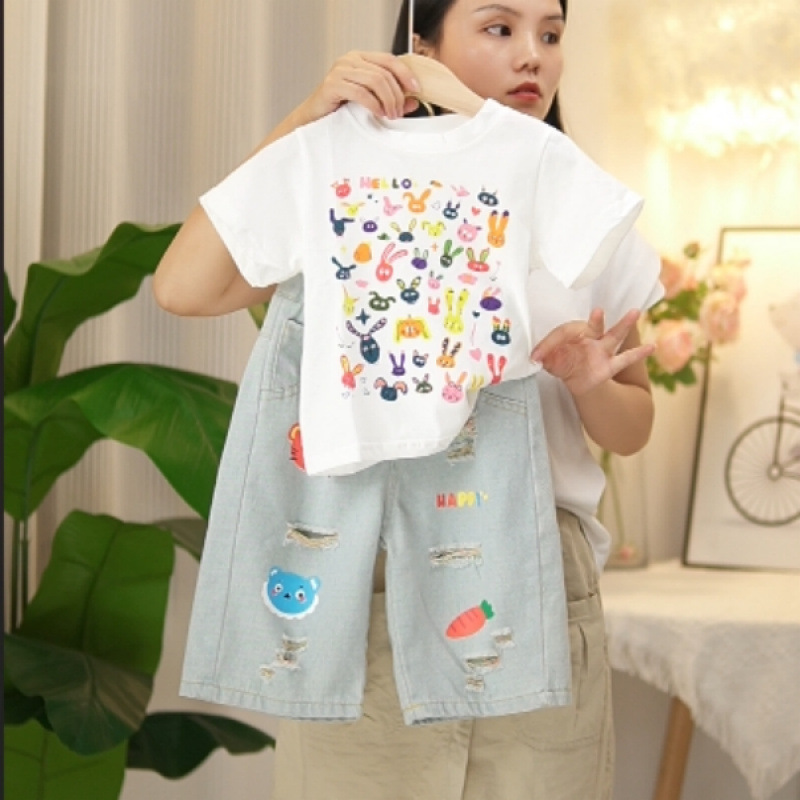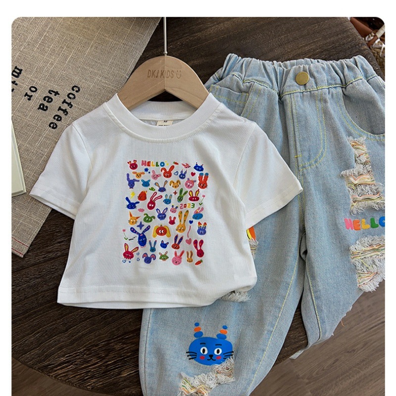 • 오프화이트 긴팔 + 컬러풀한 거즈 찢어진팬츠 (총 2벌)