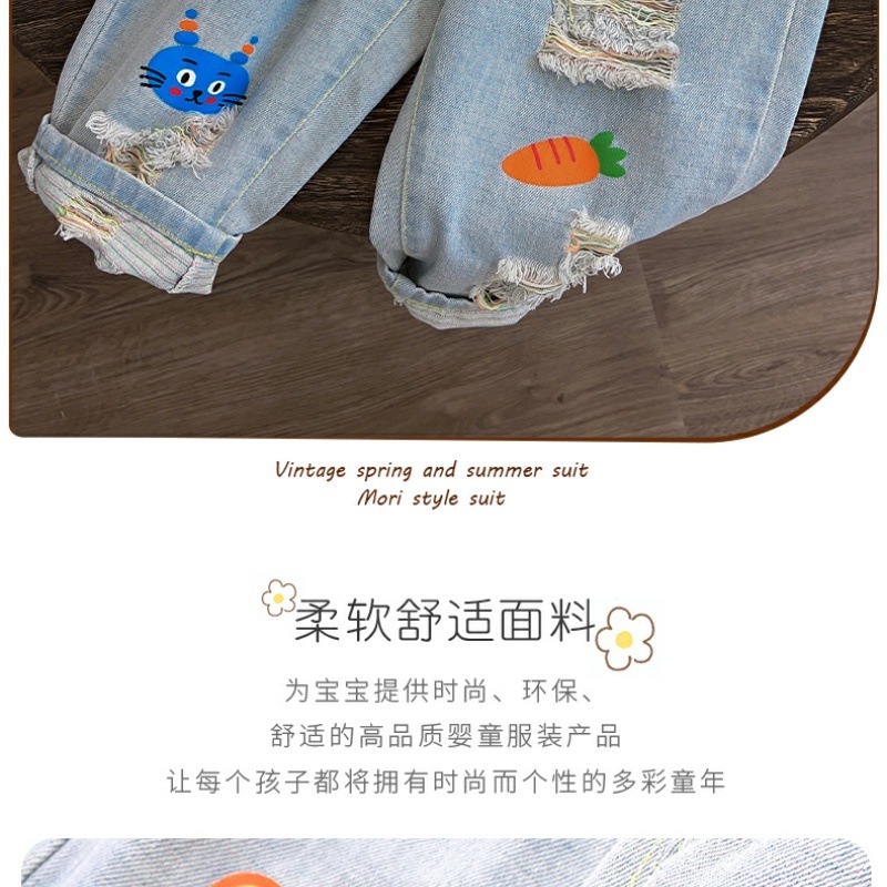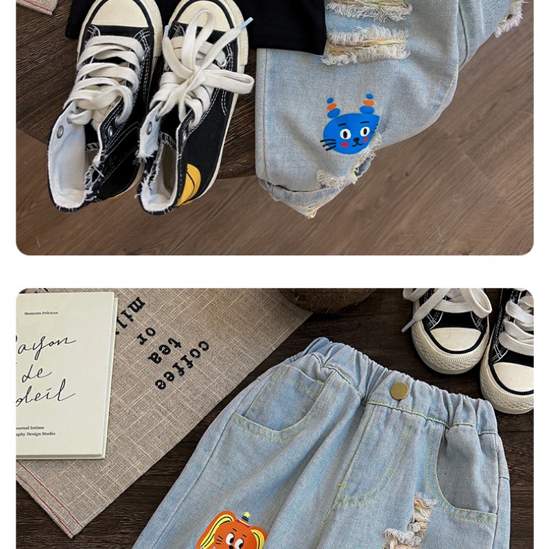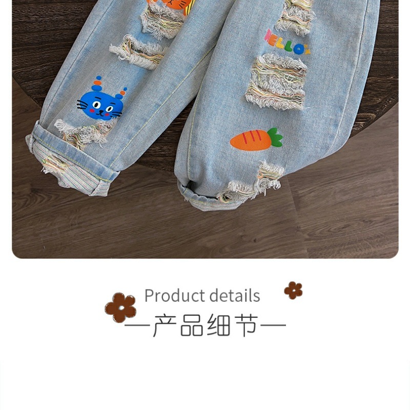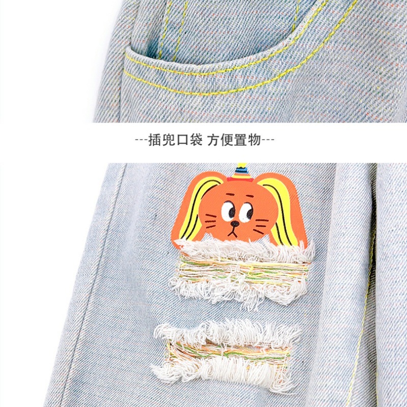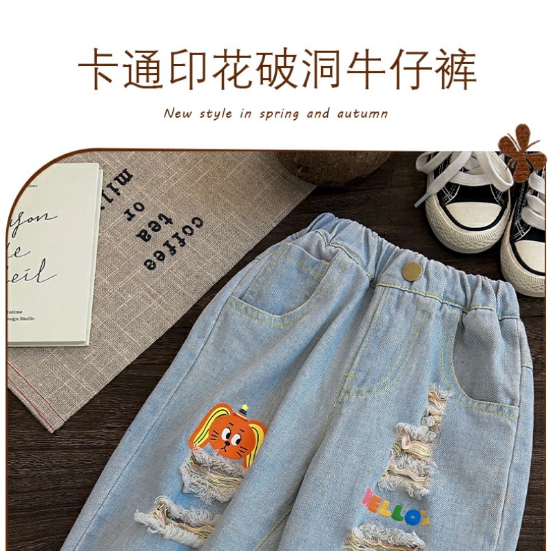 여아 도파민 찢어진 바지 청바지 2025 신작 봄 두꺼운 가을 스타일 아동 바지 한국어 버전스토어 가기