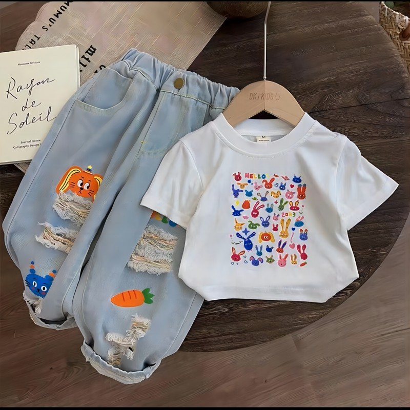 • 오프화이트 티셔츠 + 블루팬츠 (총 2벌)