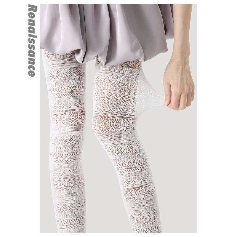 르네상스 레이스 자카드 실크 스타킹 여성의 봄과 여름 화이트 실크 얇은 섹시한 로리타 화이트 팬티 스타킹