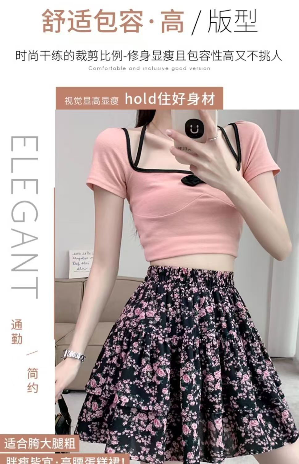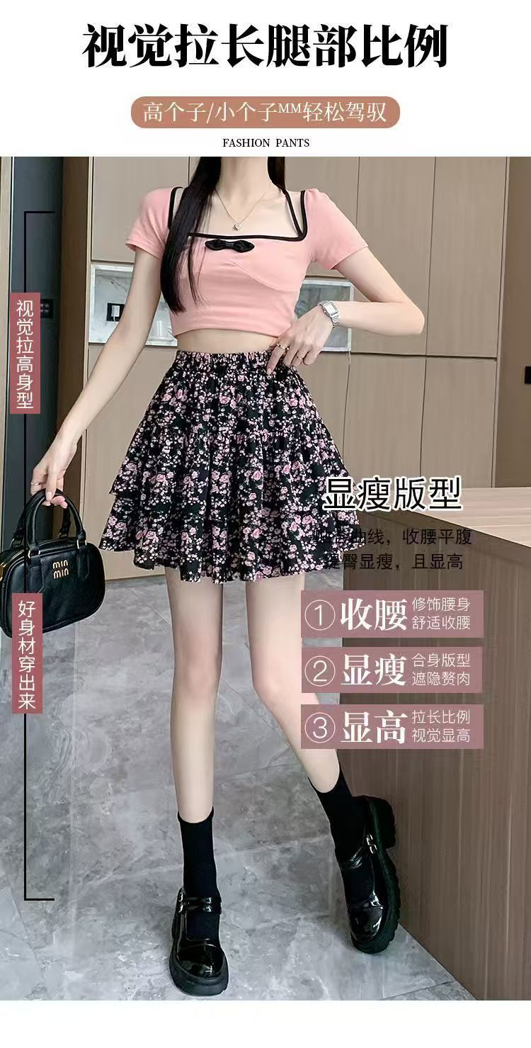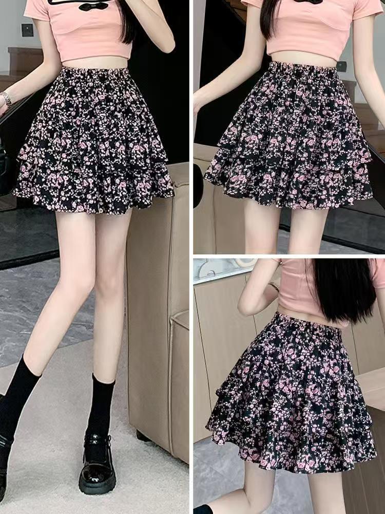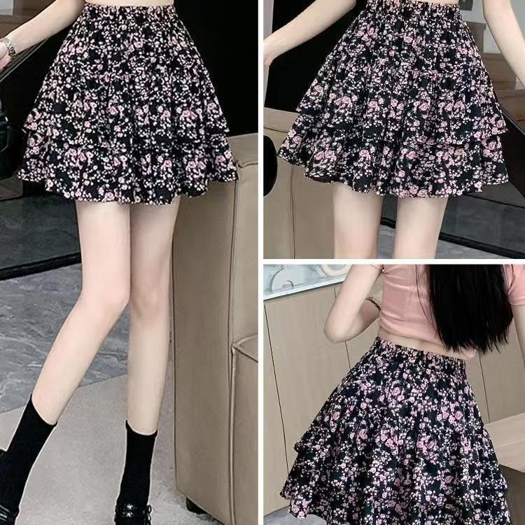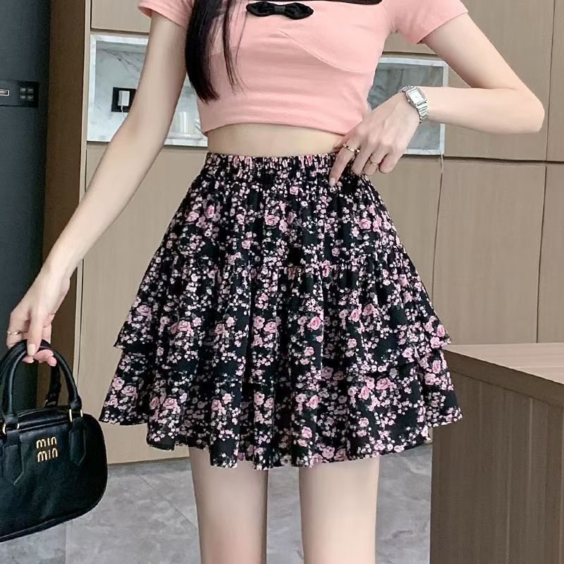 검은 치마 꽃 치마 여름 2025 새로운 높은 허리 케이크스토어 가기