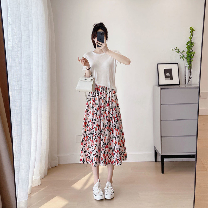 신선한 스타일 인쇄 치마 여성의 2025 높은 허리 새 스타일 흔들리는 허리 슬리밍 중간 길이의 꽃 치마
