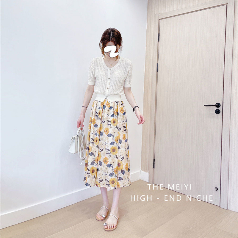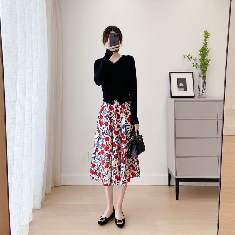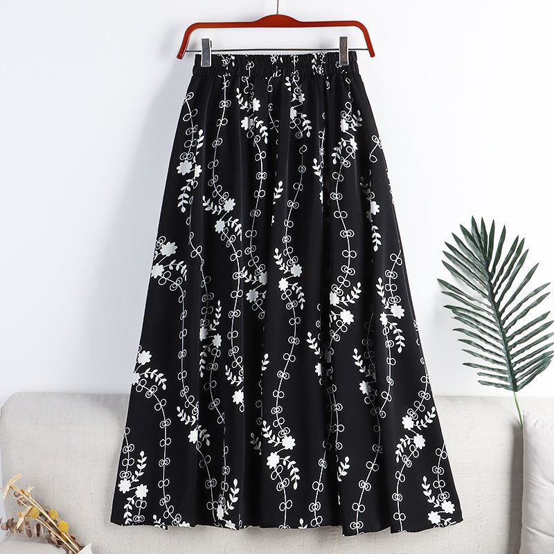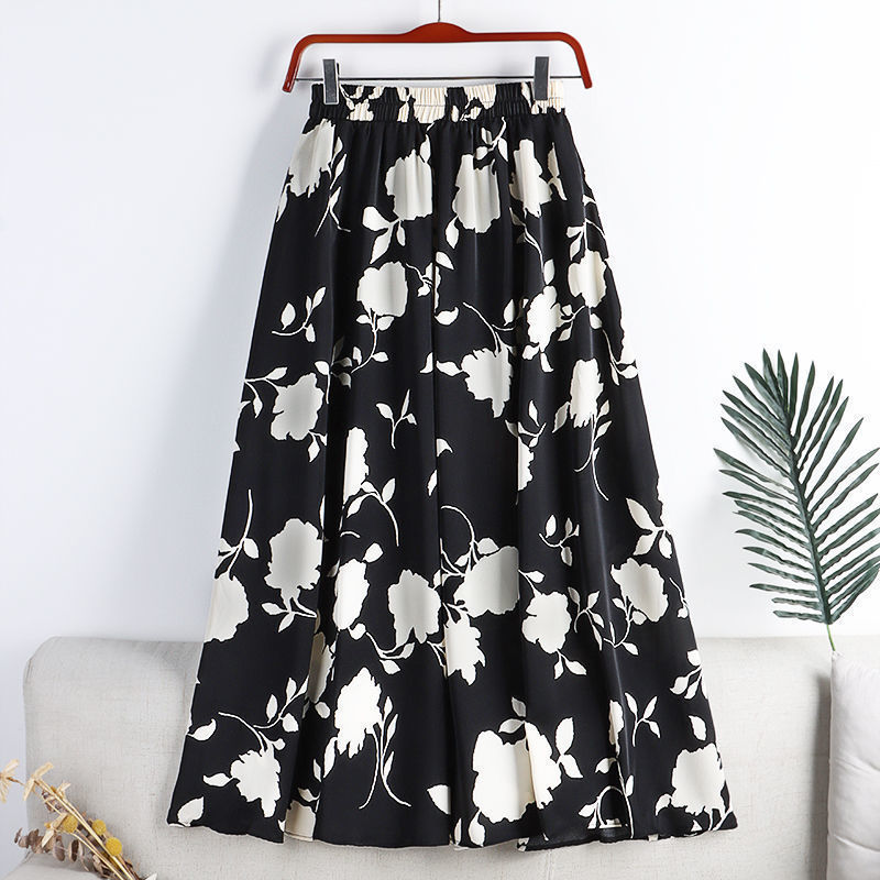 신선한 스타일 인쇄 치마 여성의 2025 높은 허리 새 스타일 흔들리는 허리 슬리밍 중간 길이의 꽃 치마스토어 가기