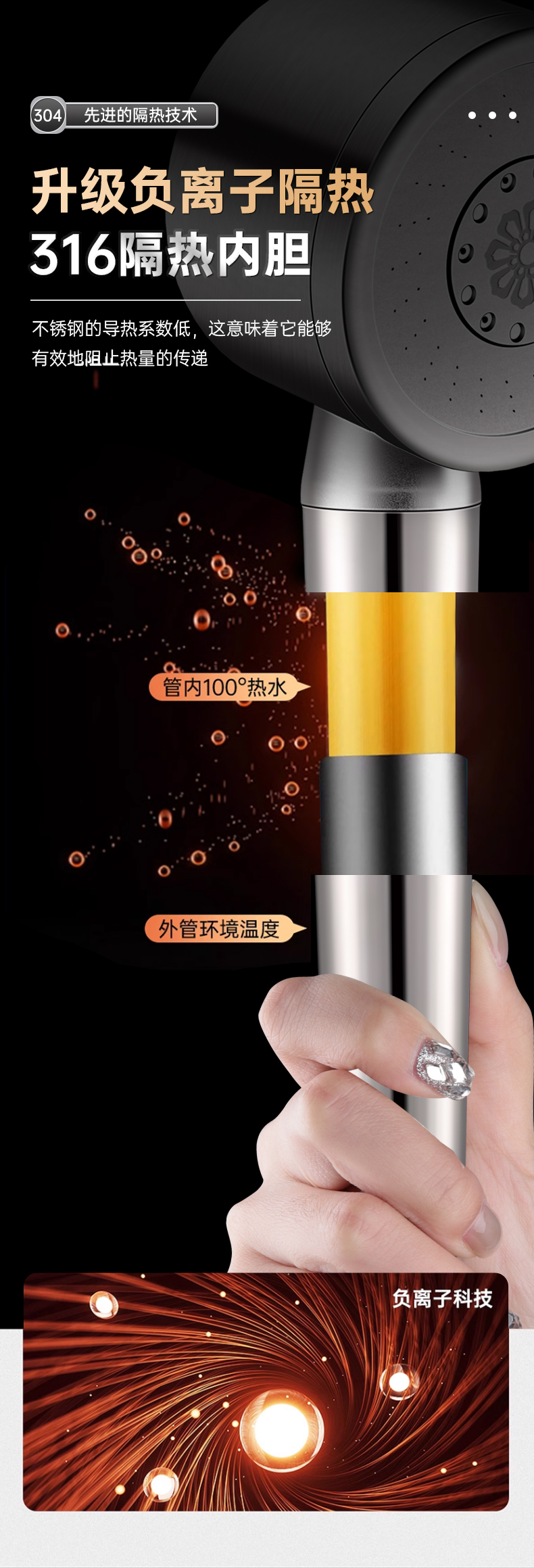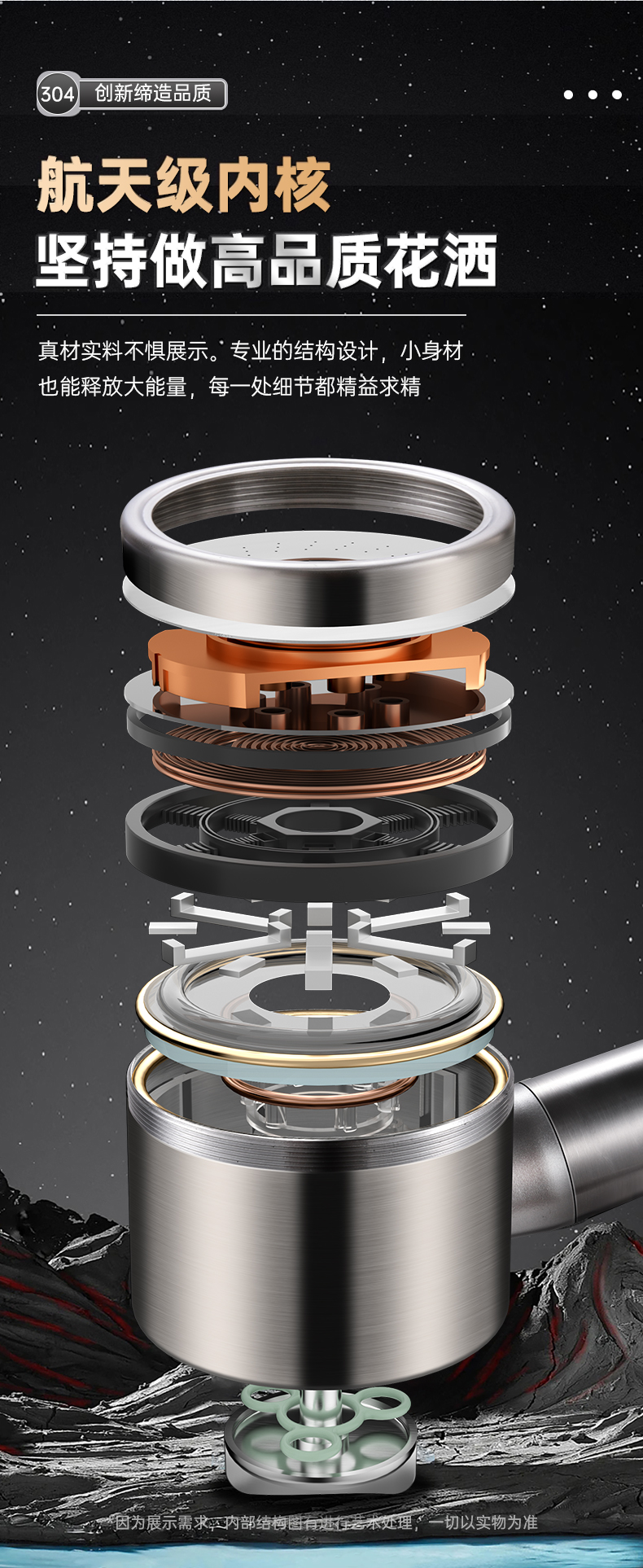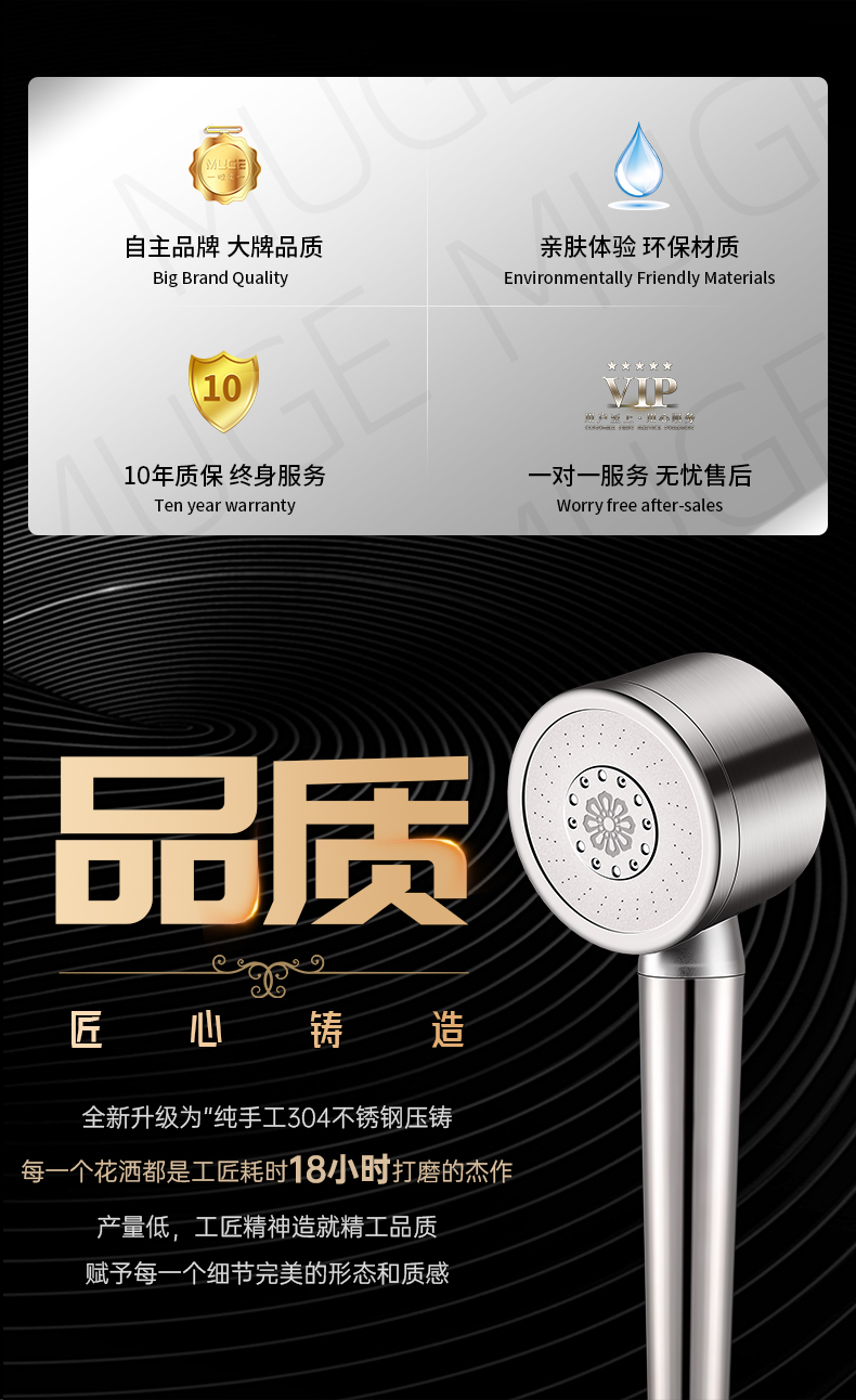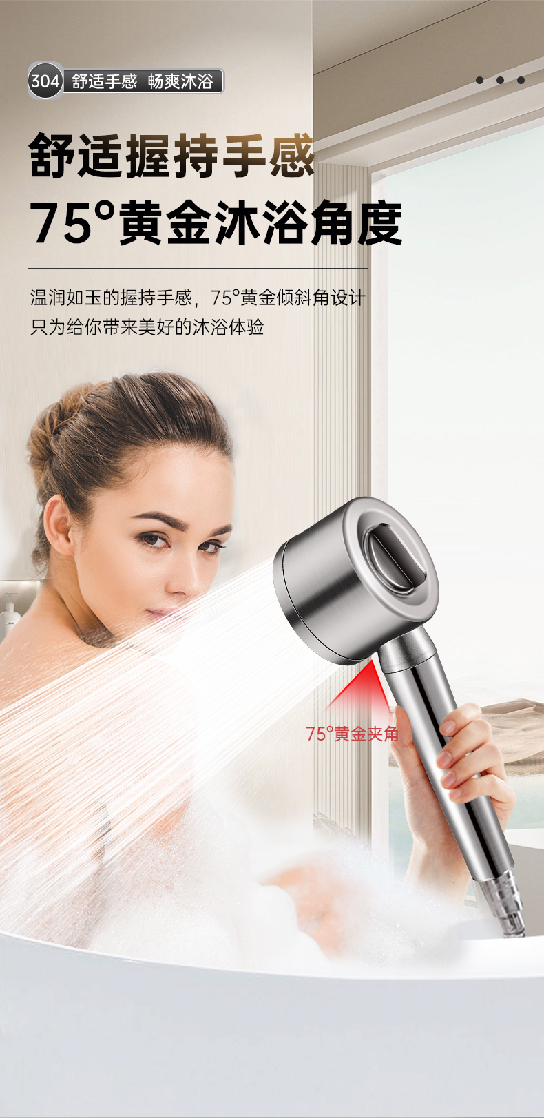 • 브러시드 실버 [두꺼운 304 스테인레스 스틸] 3단 강력한 슈퍼차저 샤워 헤드