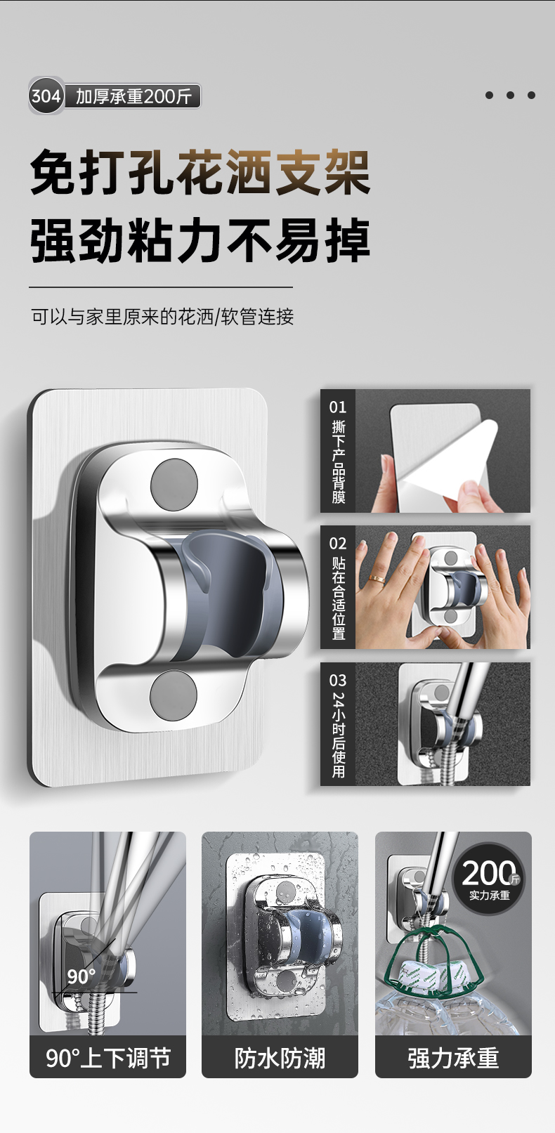 • [304 브러시드 실버] 3단 슈퍼차저 샤워기 + 브라켓