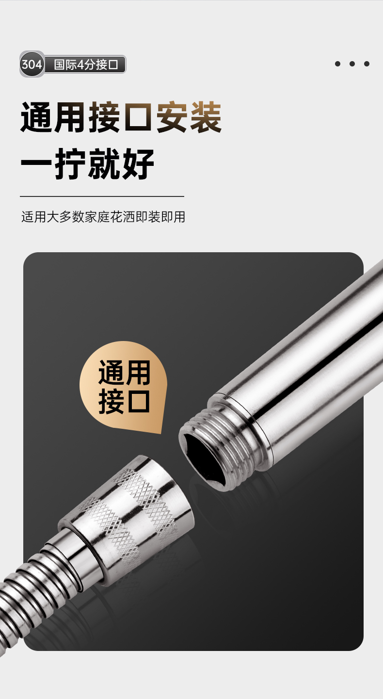 • [304 브러시드 실버] 3단 슈퍼차저 샤워기 + 1.5m개의 암호화된 방폭 호스