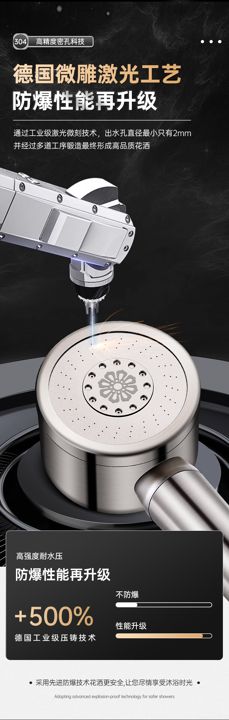 • [304 브러시드 실버] 3단 슈퍼차저 샤워기 + 2m개의 암호화 방폭 호스