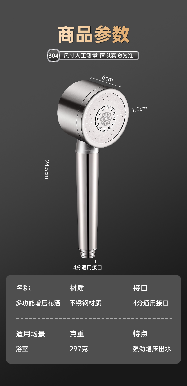 304 스테인레스 스틸 가압 샤워 헤드 욕실 샤워 샤워 탭 가압 샤워 헤드스토어 가기