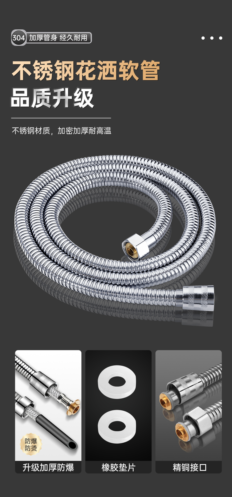 • [304 브러시드 실버] 3단 슈퍼차저 샤워기 + 호스 2m개 + 브래킷