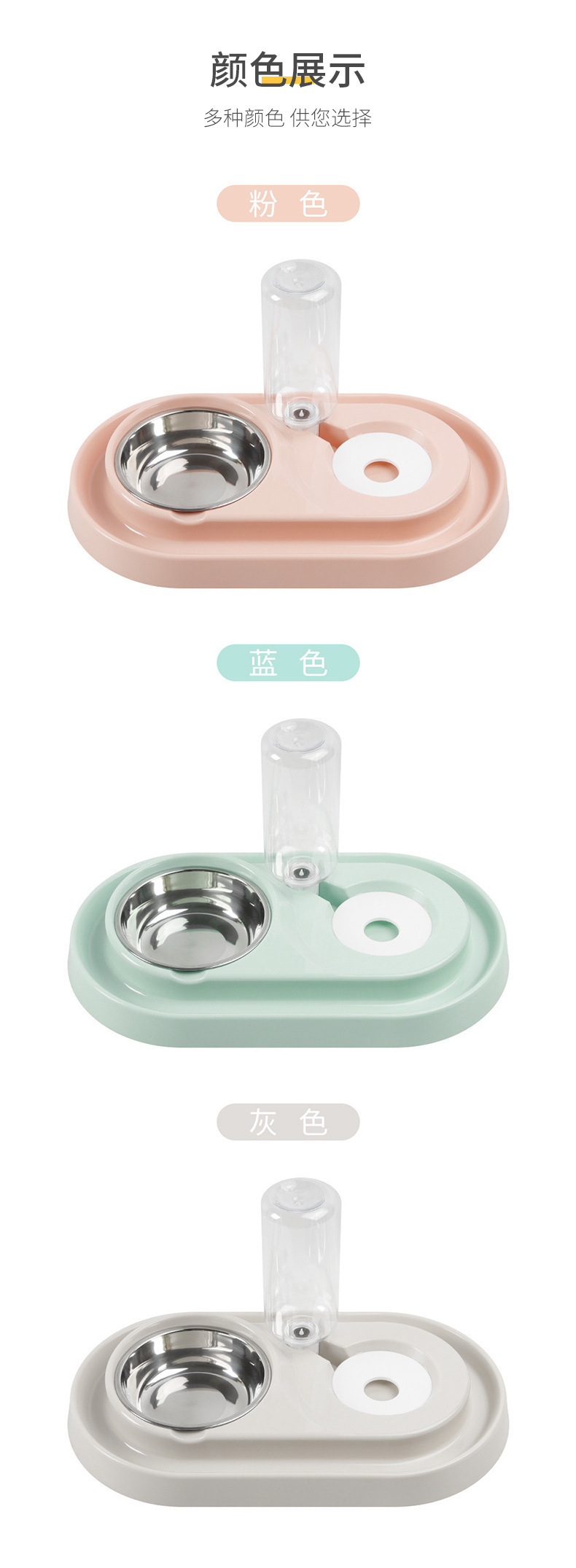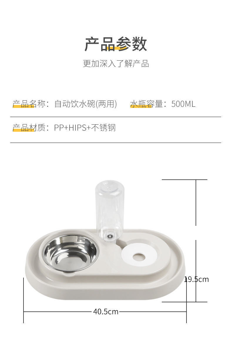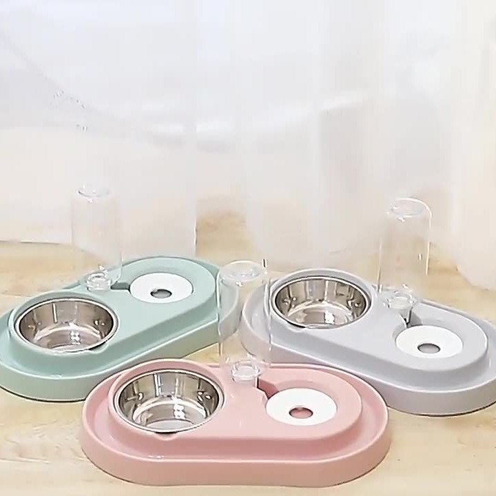 큰 얼굴 고양이 다기능 타원형 스테인리스 고양이 그릇 개 그릇 자동 식수 통합 더블 그릇 애완 동물 용품스토어 가기