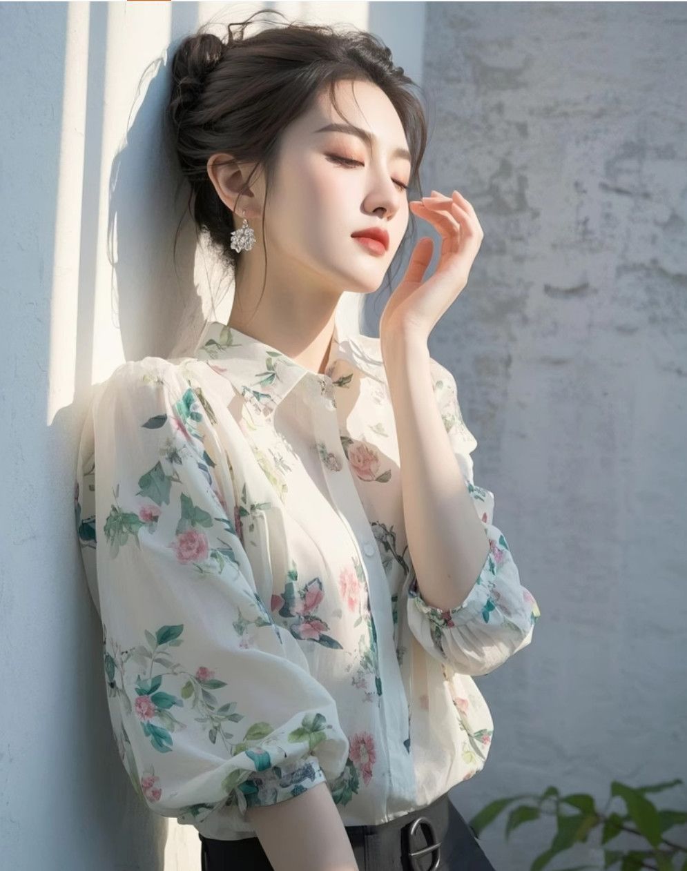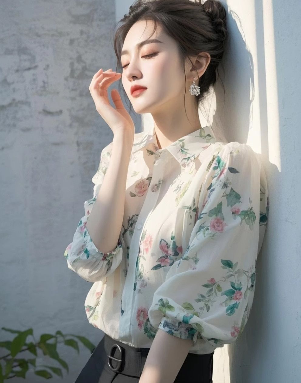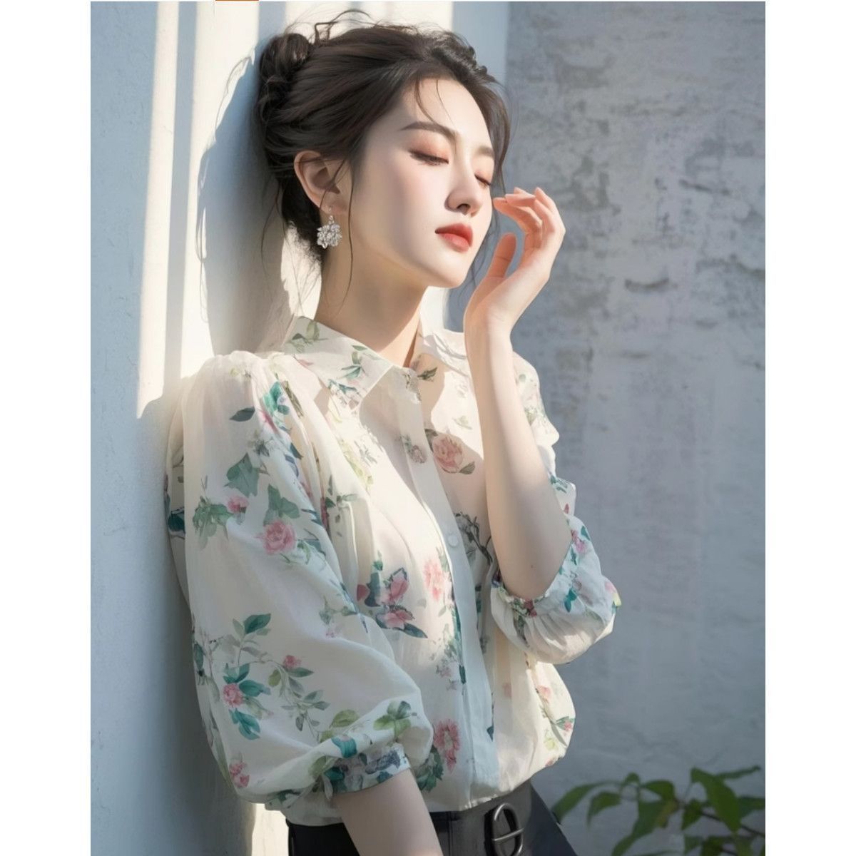 2025 여름 새로운 독특한 아름다운 셔츠 프랑스 하이 엔드 느낌 매우 잘 생긴 기질 흰색 꽃 쉬폰 셔츠스토어 가기