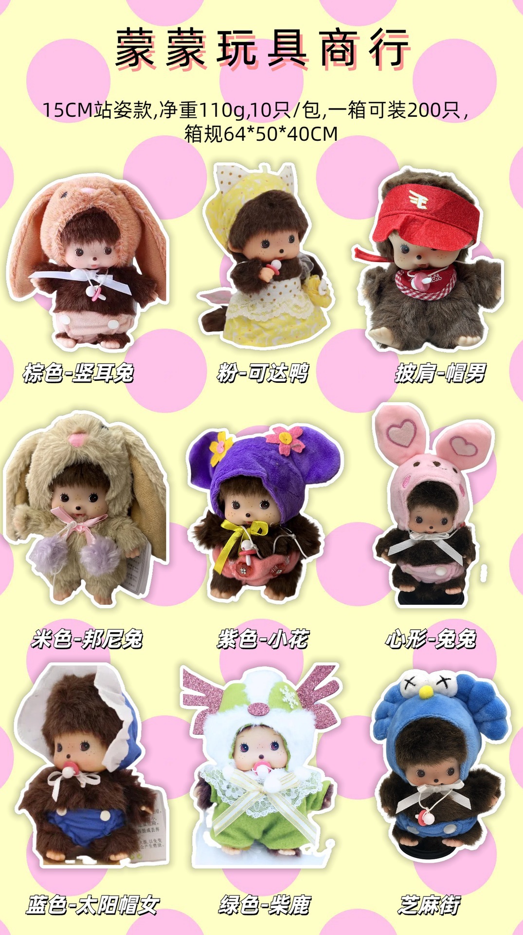15CM 원숭이 Mengqi Macaron Mengqiqi 만화 커플 서있는 자세 변형 봉제 장난감 인형 기계 남성스토어 가기