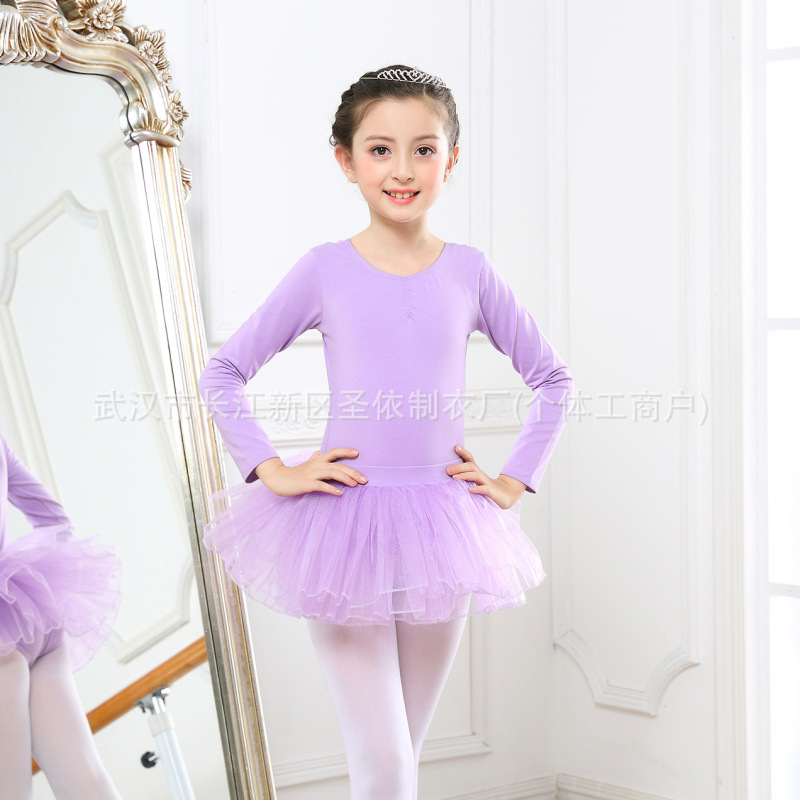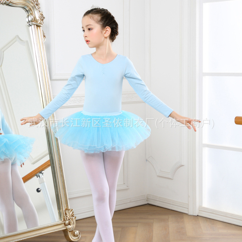 여아 발레 트레이닝 스커트, 어린이 공연복, 등급 시험 댄스복, 긴팔 퍼프 스커트