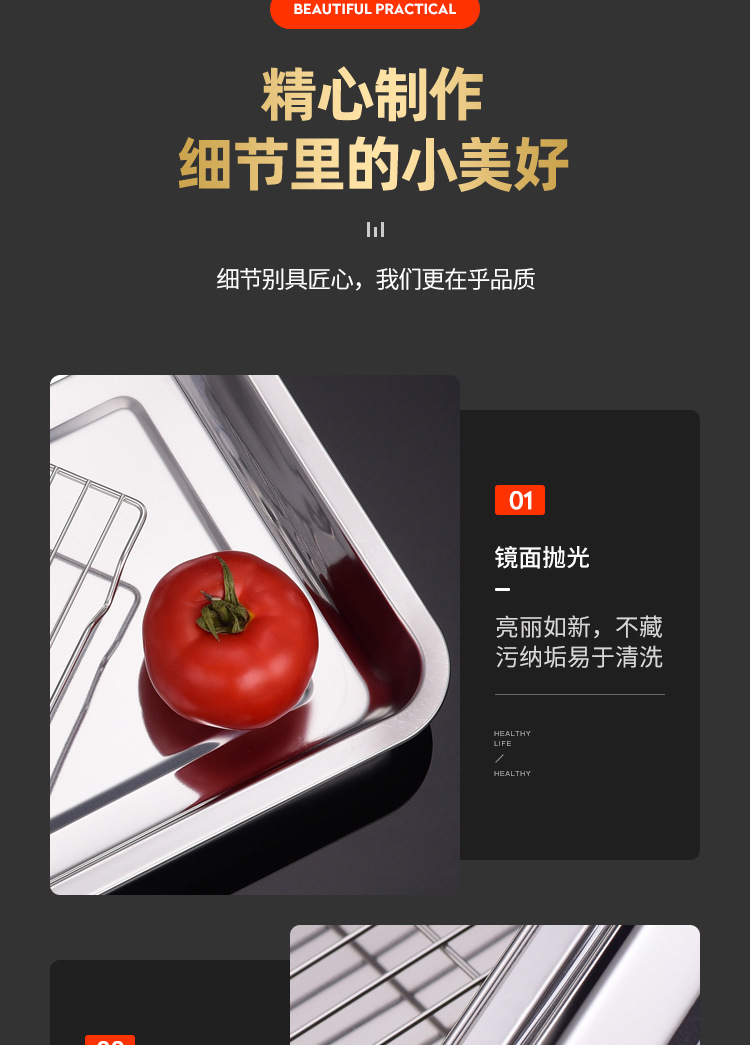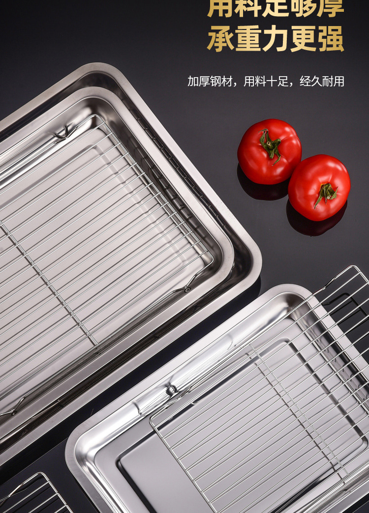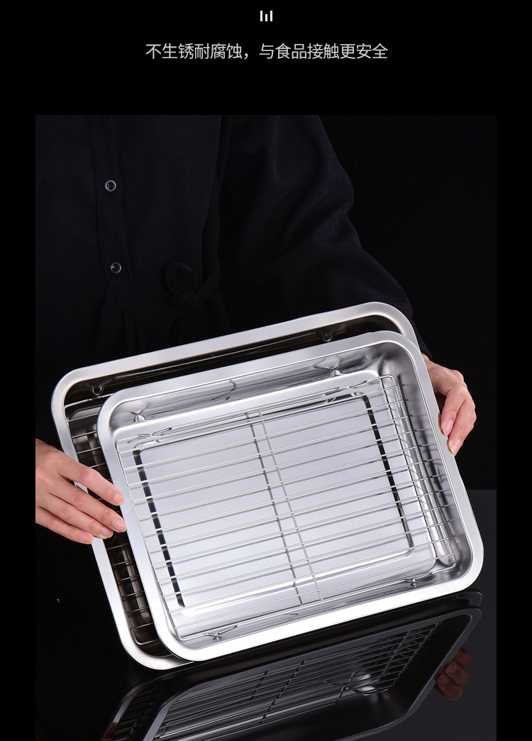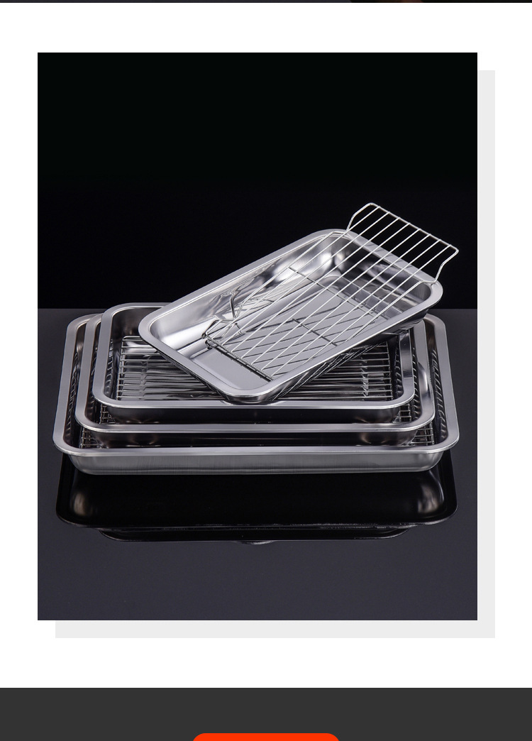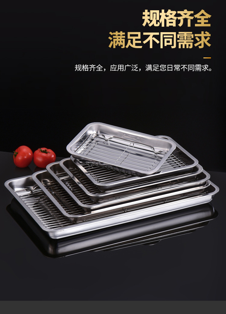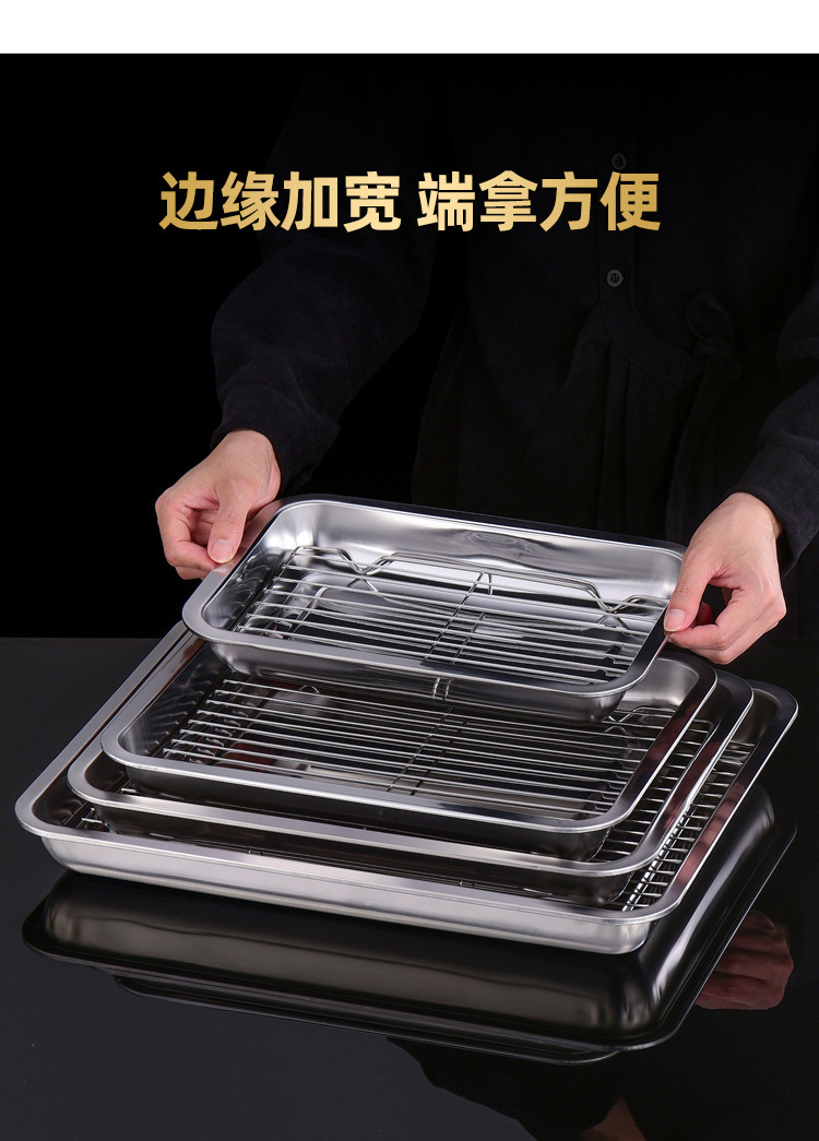 스테인리스 접시 사각 접시(망이 있는 기름 제거 선반 포함) 상업용 트레이 물 및 기름 여과 접시. 상업용 특대형 식기스토어 가기