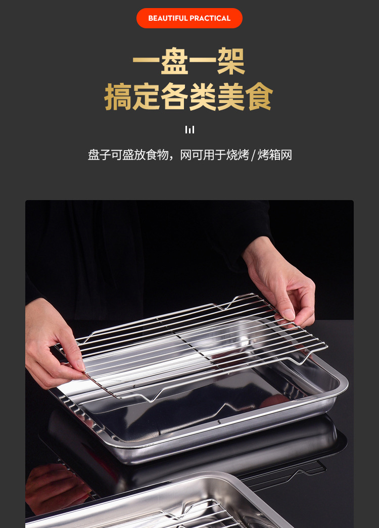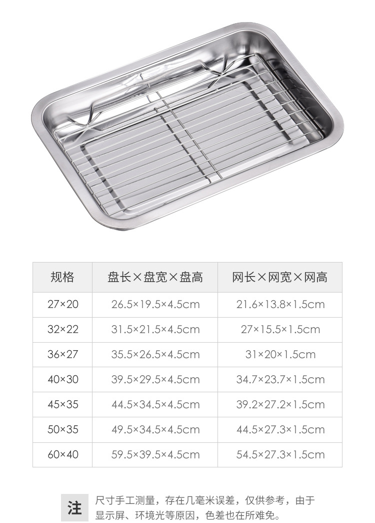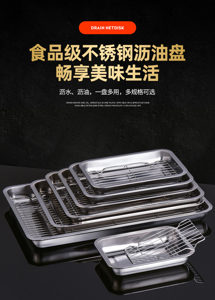 스테인리스 접시 사각 접시(망이 있는 기름 제거 선반 포함) 상업용 트레이 물 및 기름 여과 접시. 상업용 특대형 식기