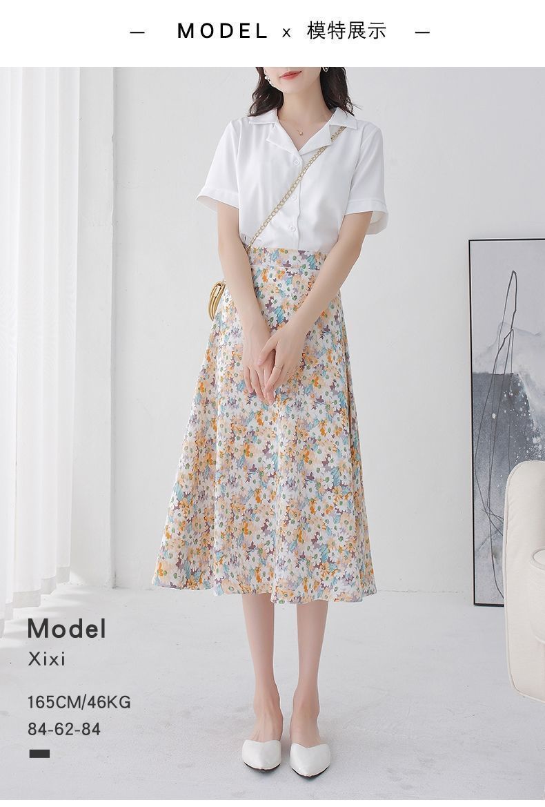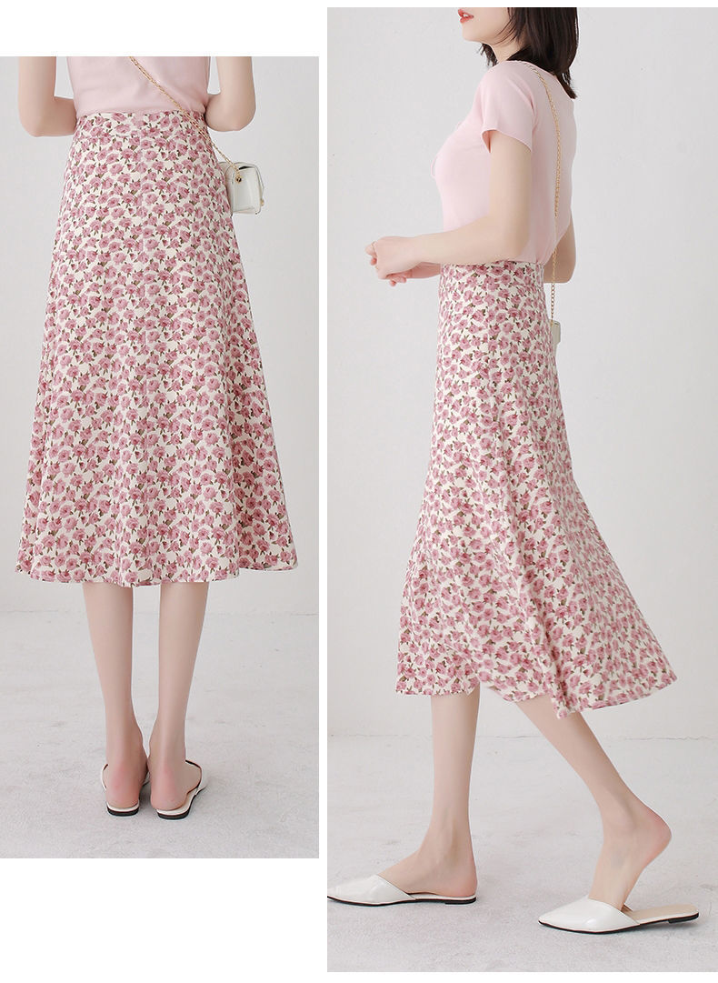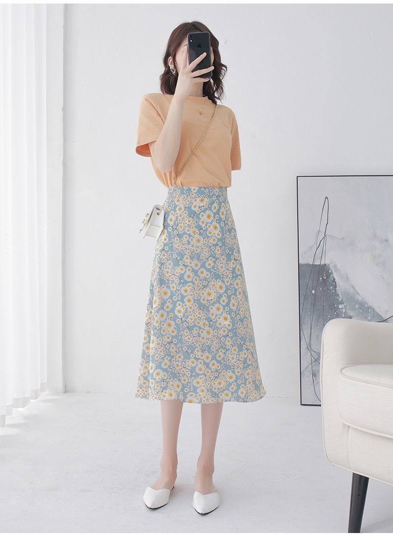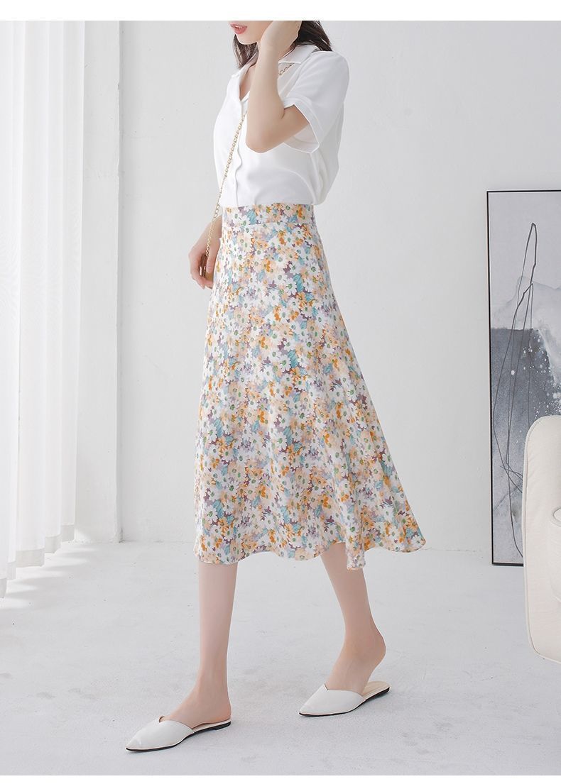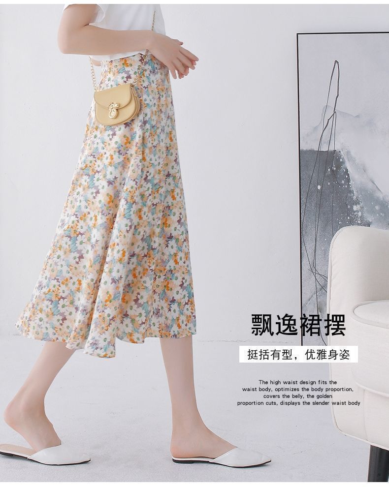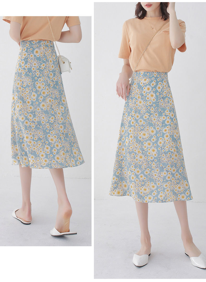 꽃 치마 여성의 2024 새로운 도착 스커트 슬리밍 높은 허리 유행 인쇄 중간 길이 스커트 작은 데이지 꽃 치마