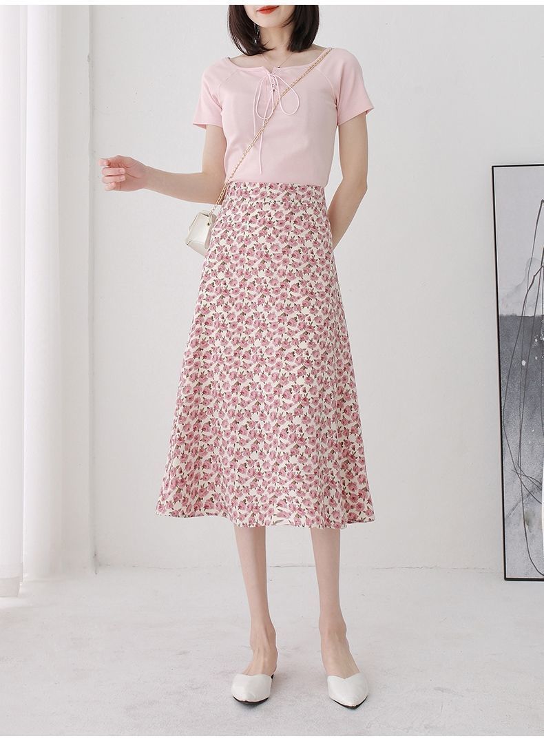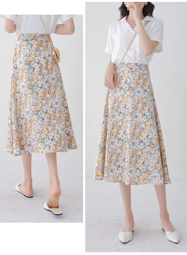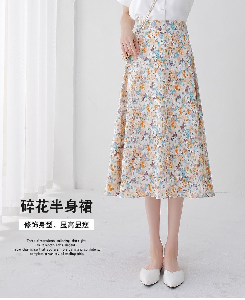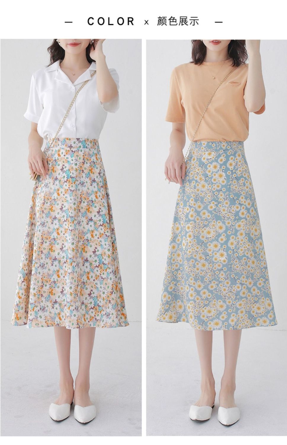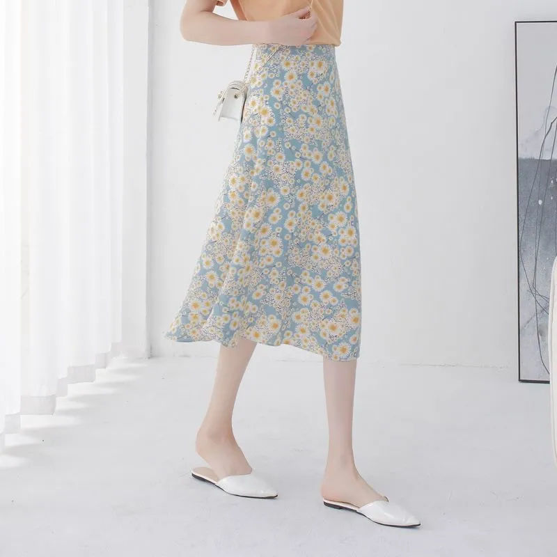 꽃 치마 여성의 2024 새로운 도착 스커트 슬리밍 높은 허리 유행 인쇄 중간 길이 스커트 작은 데이지 꽃 치마스토어 가기