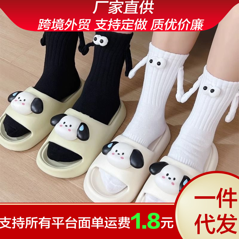 [재고 있음, 몇 초 안에 배송] 커플이 손을 잡을 수 있는 흑백 자석 양말, 종아리 중간 양말, 절친한 친구의 트렌디한 땀 흡수 롱 양말스토어 가기
