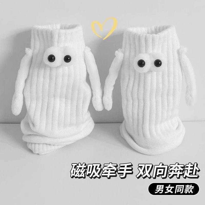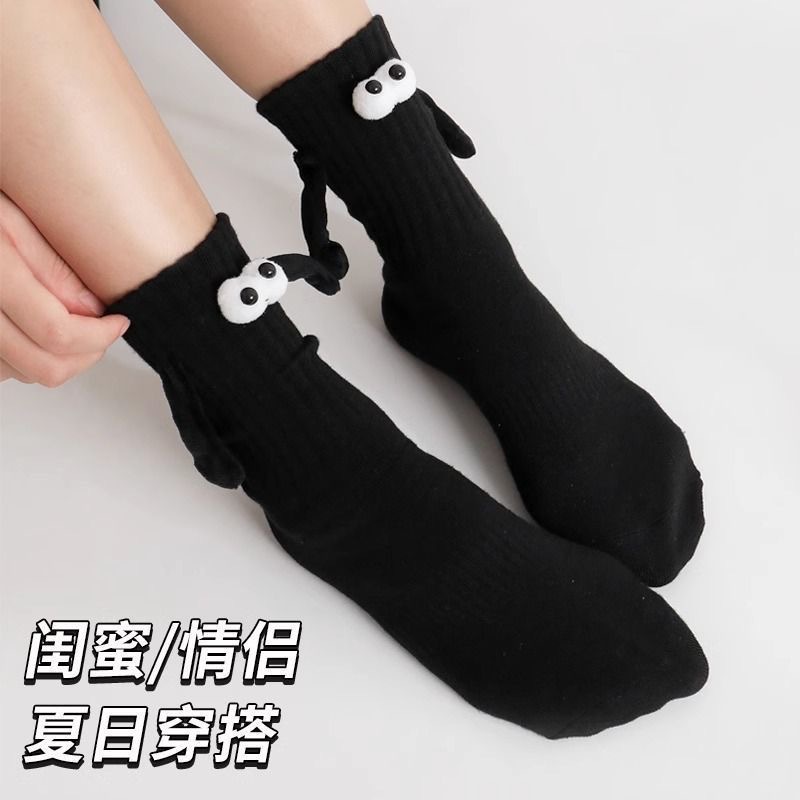 [재고 있음, 몇 초 안에 배송] 커플이 손을 잡을 수 있는 흑백 자석 양말, 종아리 중간 양말, 절친한 친구의 트렌디한 땀 흡수 롱 양말