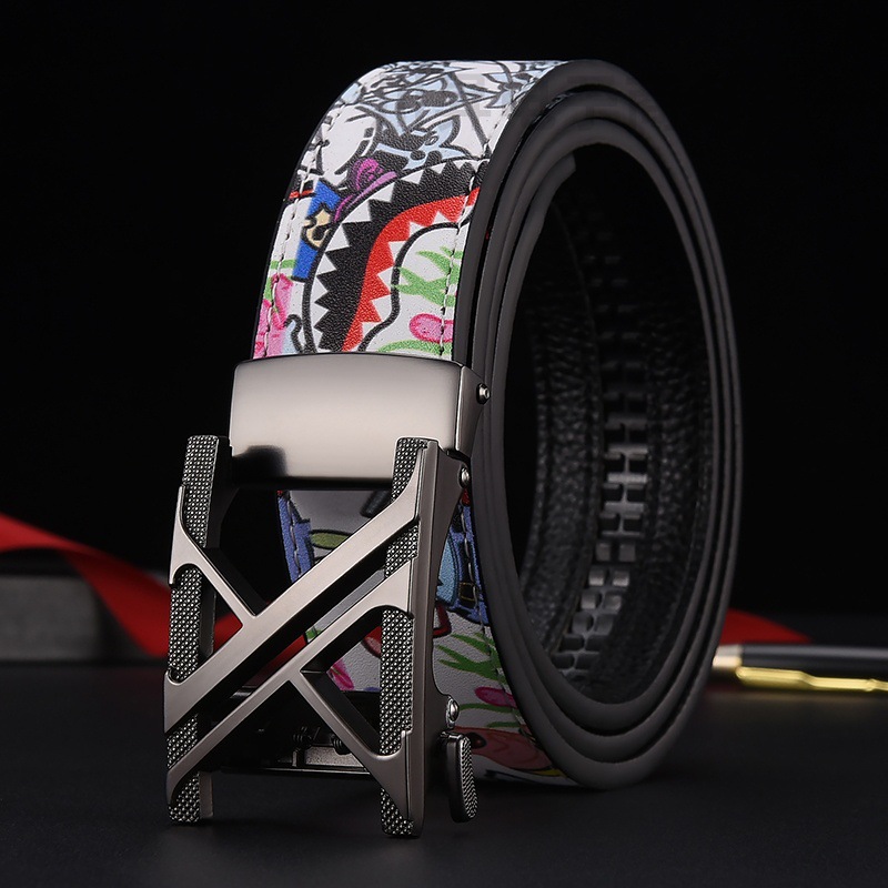 새로운 벨트 패션 남성 벨트 가죽 비즈니스 트렌드 레저 조커 편지 낙서 도매 세대