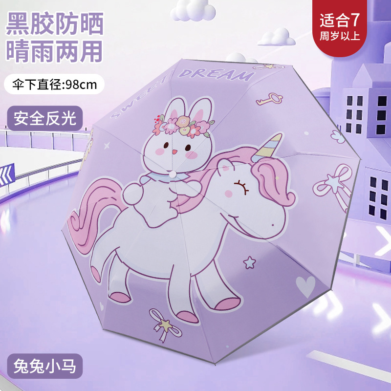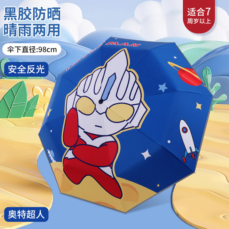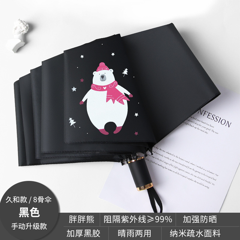 어린이 접는 우산 수동 대형 강화 두꺼운 태양 우산 방풍 휴대용 학생 학교 우산 철 검정색 비닐 없음스토어 가기